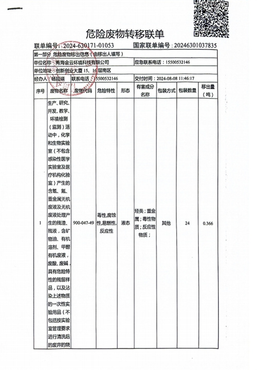 危險(xiǎn)廢物轉(zhuǎn)移聯(lián)單發(fā)布日期:(2024/9/27) 點(diǎn)擊次數(shù):1504 |