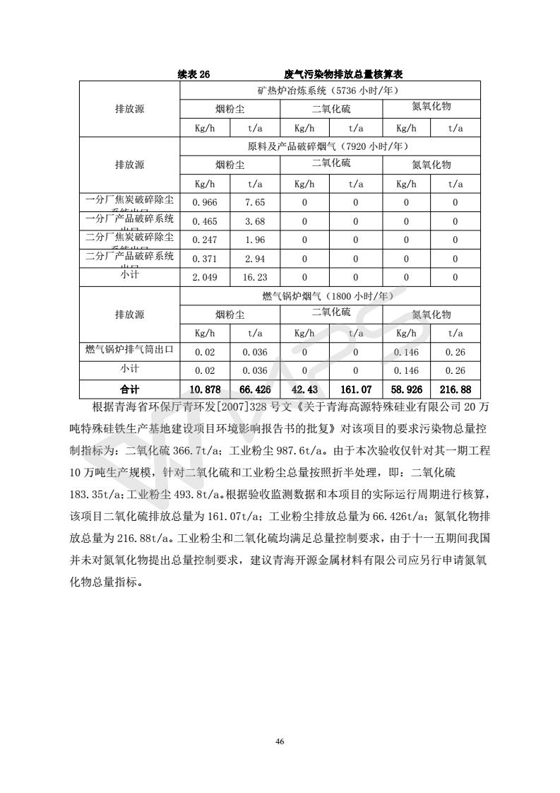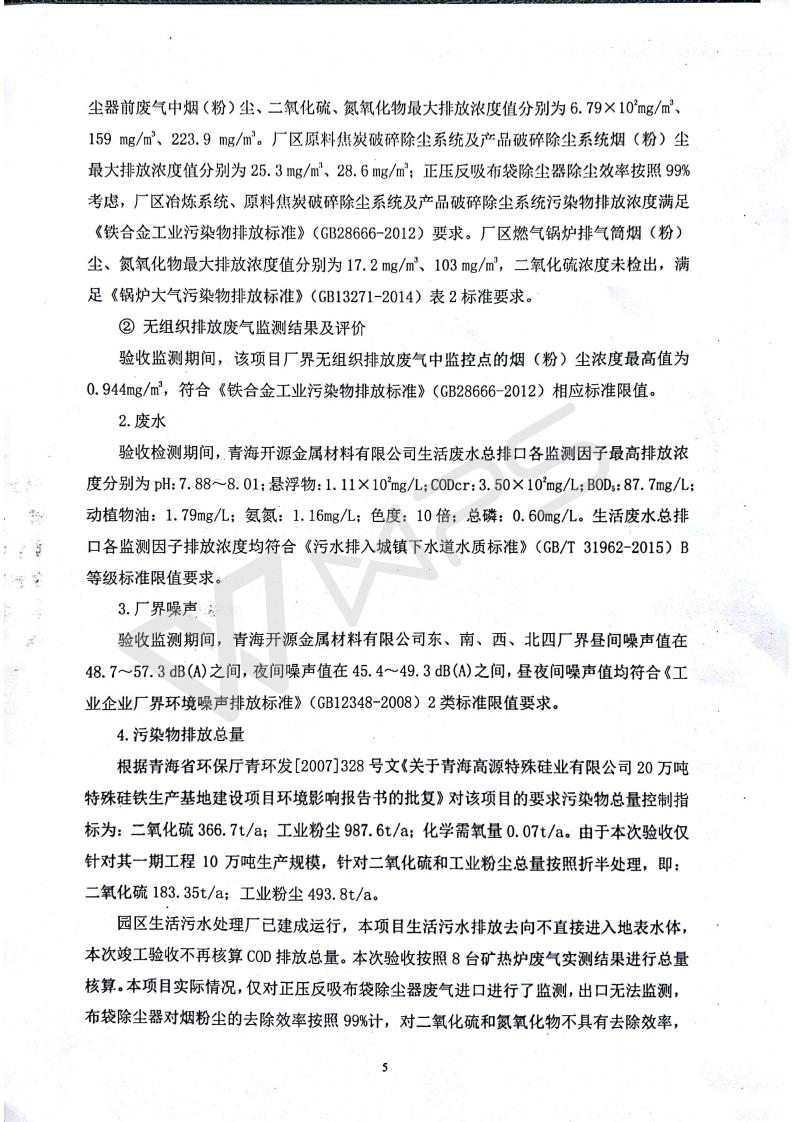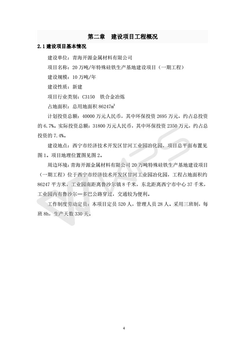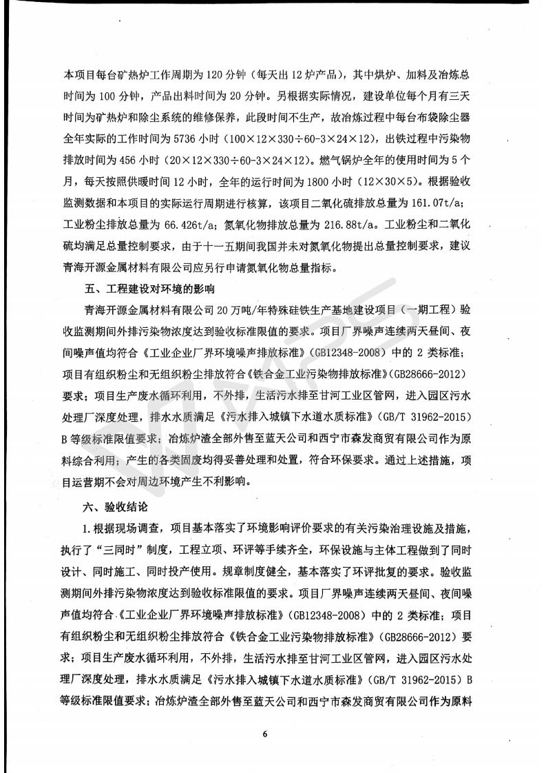 青海開源金屬材料有限公司20萬噸特殊硅鐵生產(chǎn)基地建設(shè)項(xiàng)目(一期工程)竣工環(huán)境保護(hù)驗(yàn)收報(bào)告書會(huì)后修改20180521