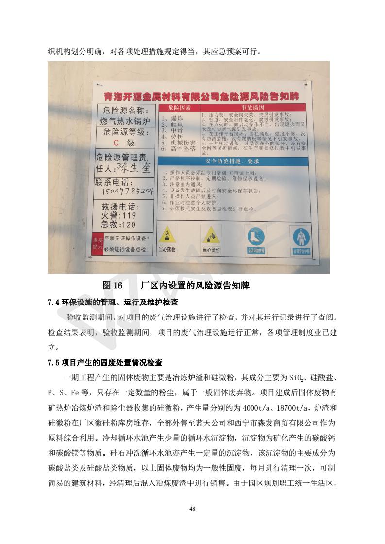 2018年1月11日,青海開源金屬材料有限公司組織召開20萬噸/年特殊硅鐵生產(chǎn)基地建設(shè)項(xiàng)目(一期工程)竣工環(huán)境保護(hù)驗(yàn)收會(huì)。 青海開源金屬材料有限公司20萬噸特殊硅鐵生產(chǎn)基地建設(shè)項(xiàng)目(一期工程)驗(yàn)收組意見.
