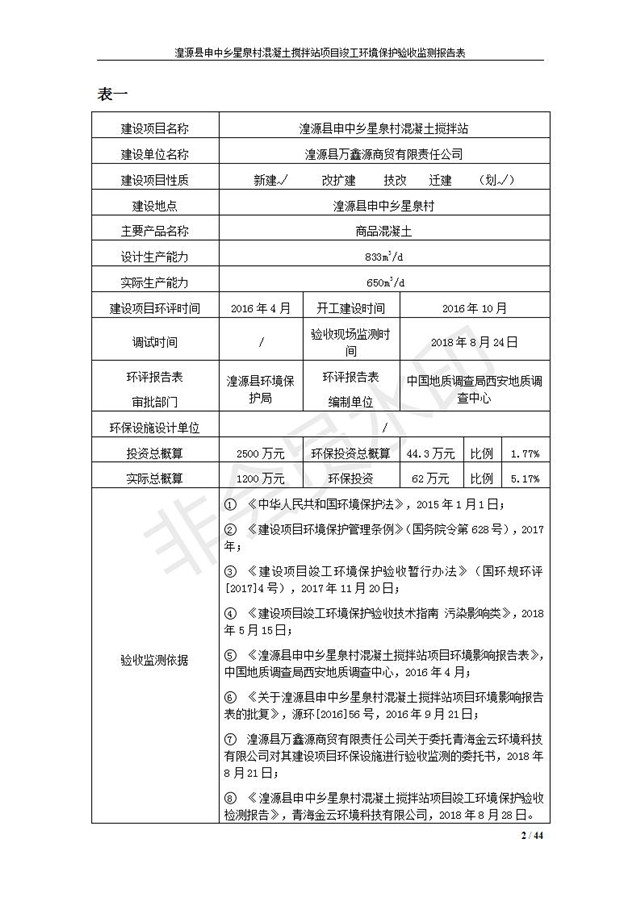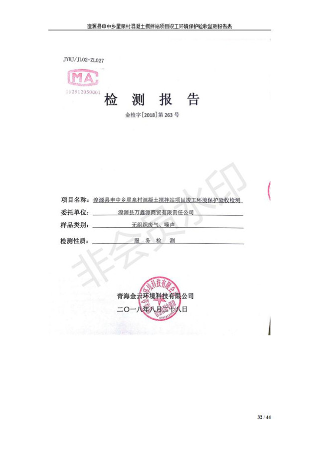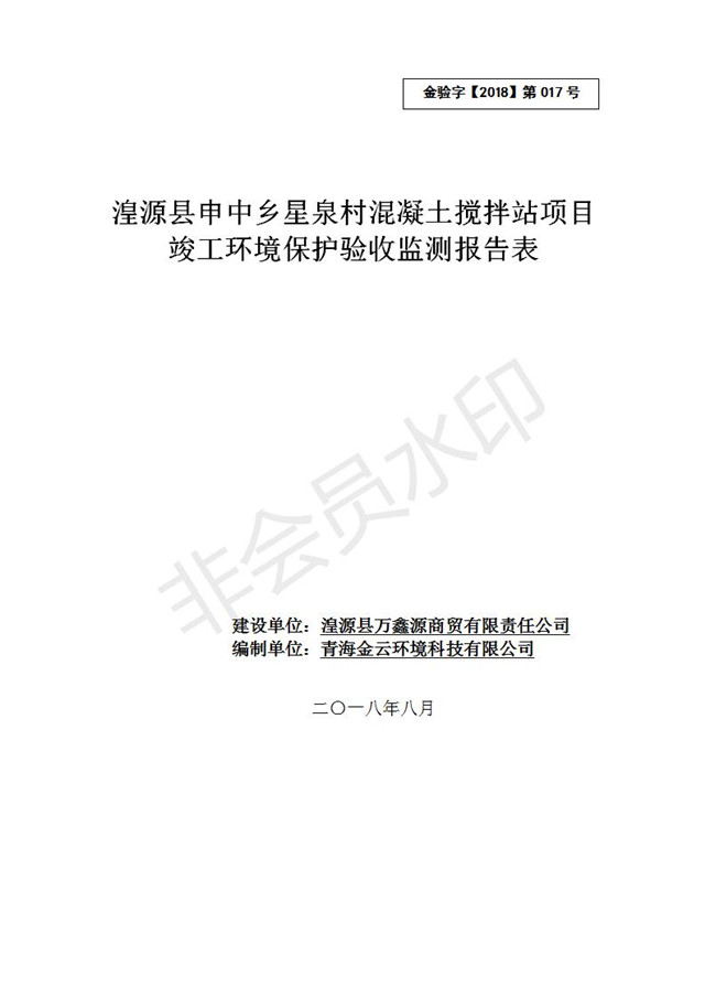 湟源縣申中鄉(xiāng)星泉村混凝土攪拌站項(xiàng)目竣工環(huán)境保護(hù)驗(yàn)收監(jiān)測(cè)報(bào)告表公示