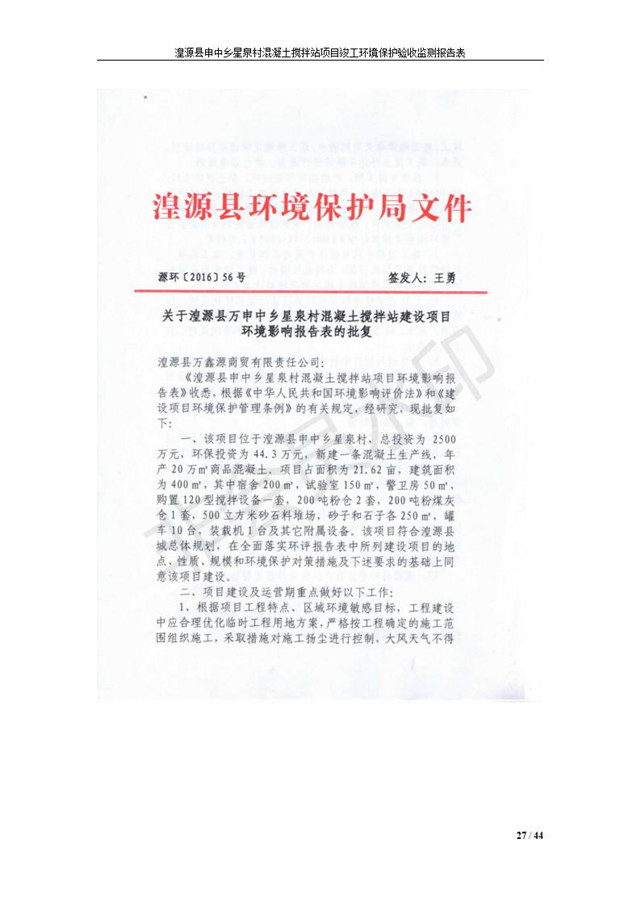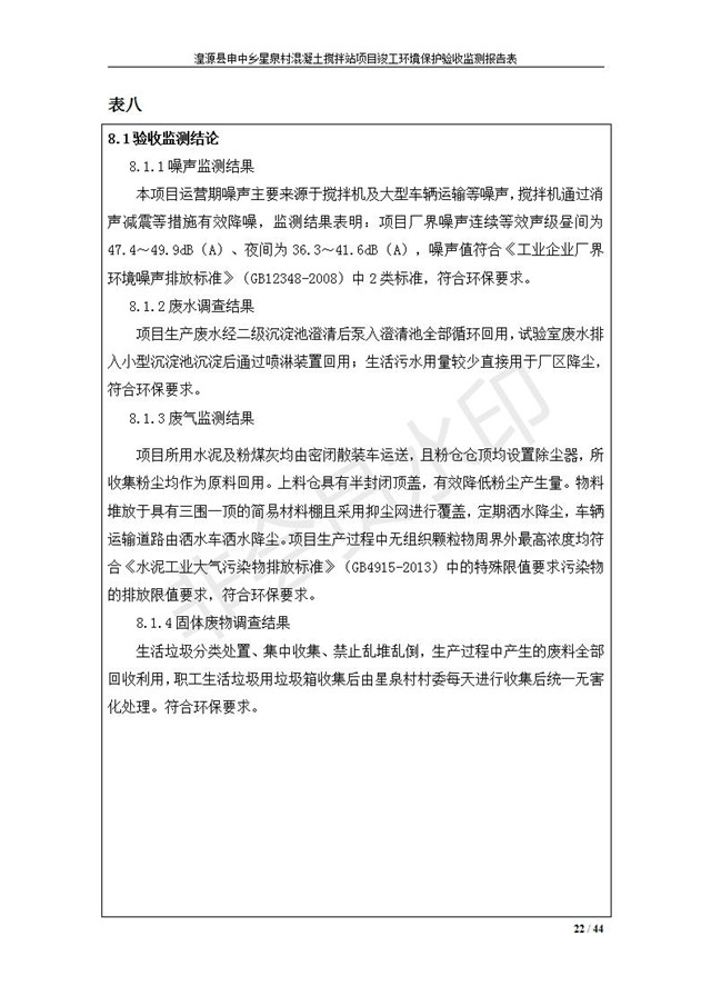 湟源縣申中鄉(xiāng)星泉村混凝土攪拌站項(xiàng)目竣工環(huán)境保護(hù)驗(yàn)收監(jiān)測(cè)報(bào)告表公示發(fā)布日期:(2018-11-16) 點(diǎn)擊次數(shù):2170 |