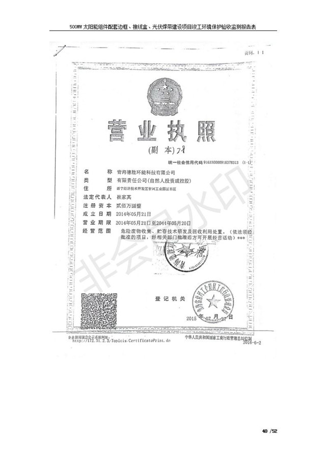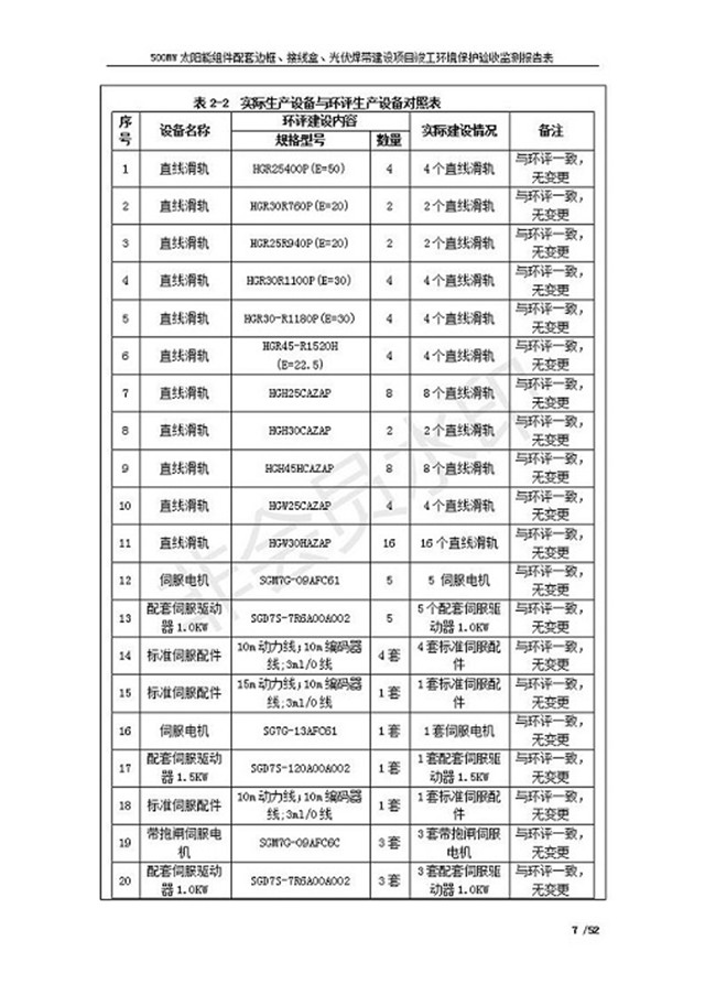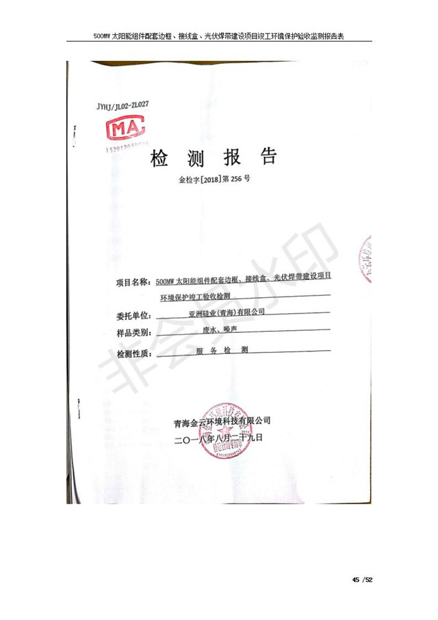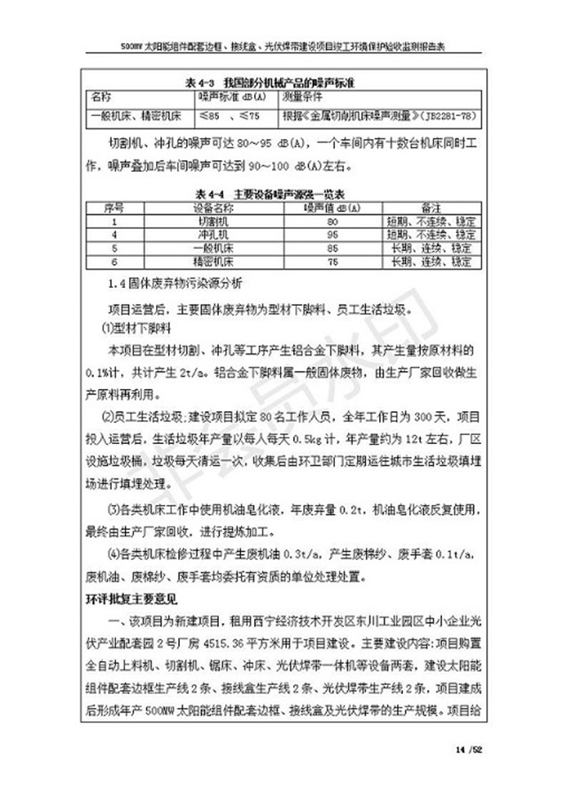 500MW太陽能組件配套邊框、接線盒、光伏焊帶建設(shè)項(xiàng)目竣工環(huán)境保護(hù)驗(yàn)收監(jiān)測報(bào)告表公示