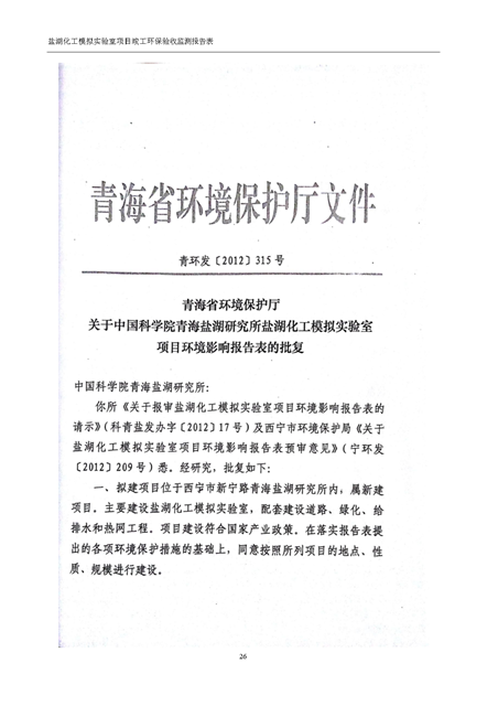 中國科學(xué)院青海鹽湖研究所鹽湖化工模擬實(shí)驗(yàn)室項(xiàng)目竣工環(huán)境保護(hù)驗(yàn)收監(jiān)測報(bào)告表公示發(fā)布日期:(2018-11-23) 點(diǎn)擊次數(shù):2066 |