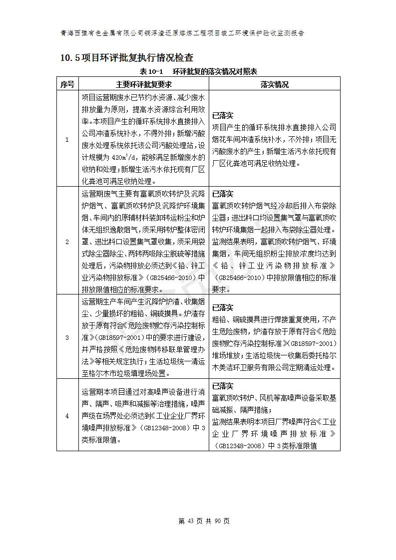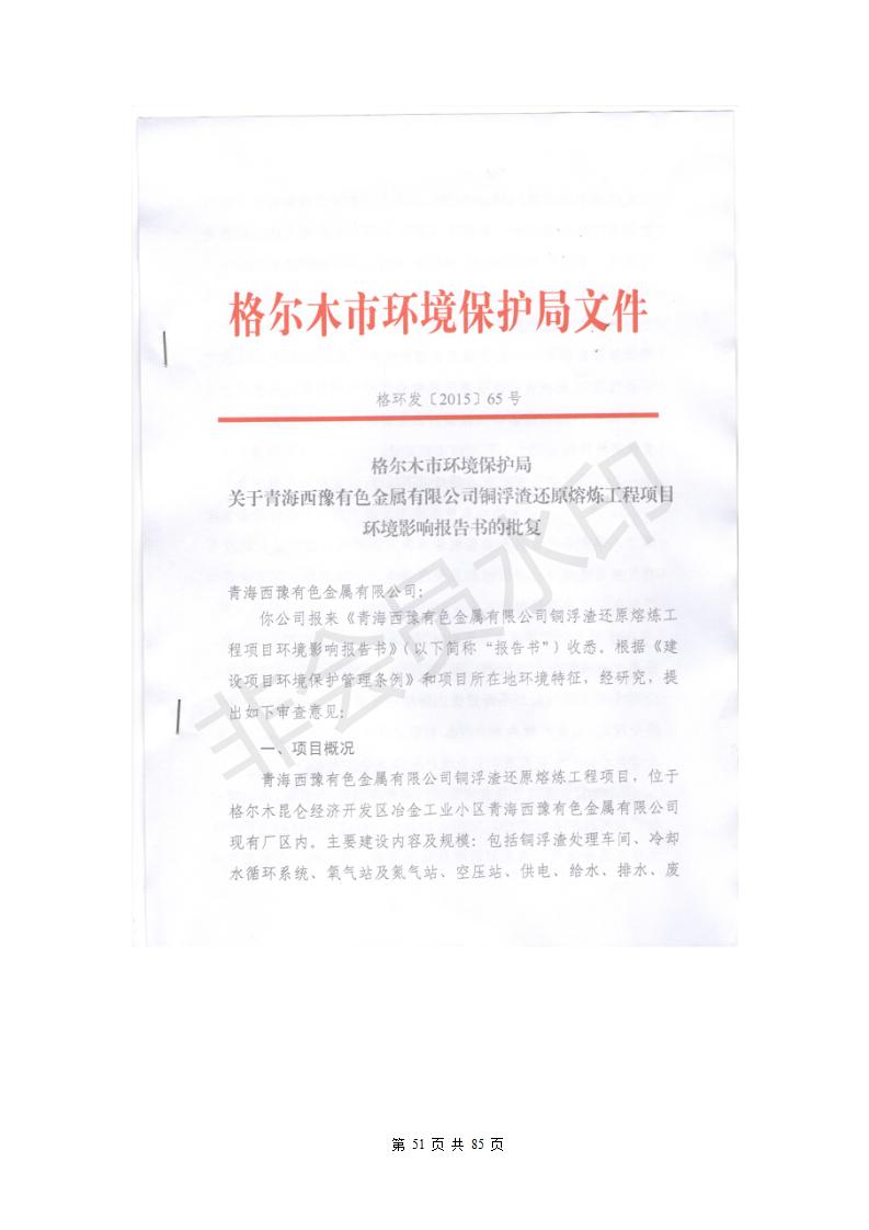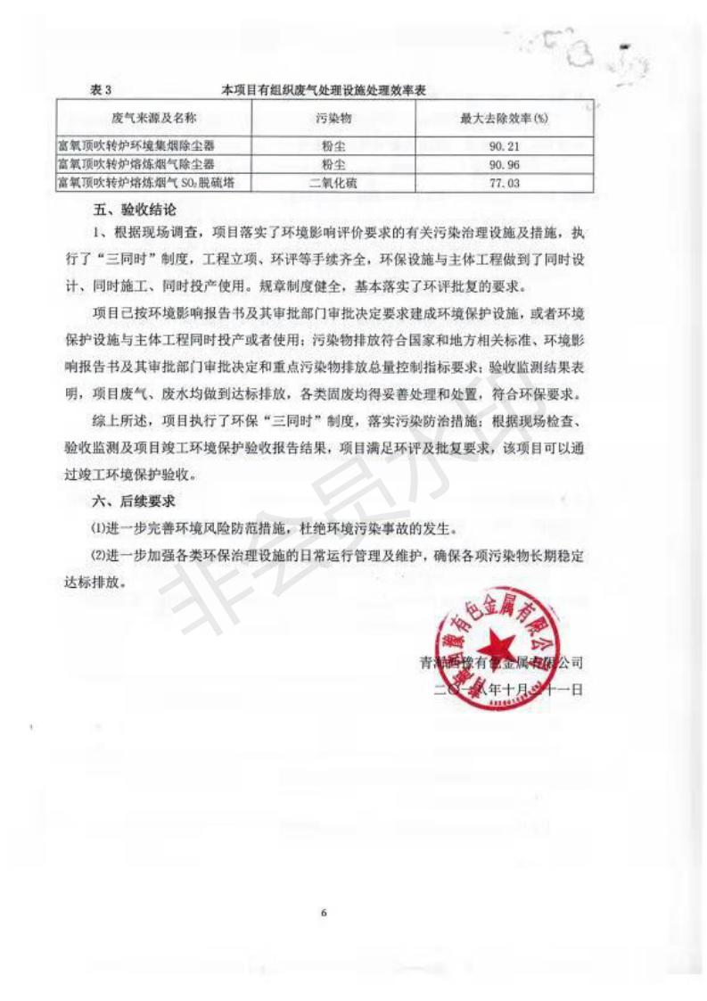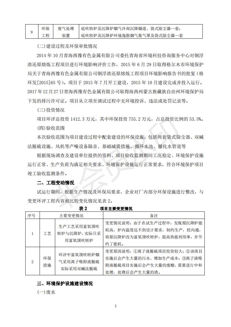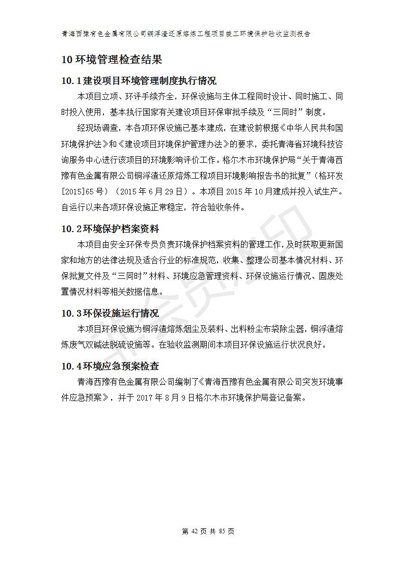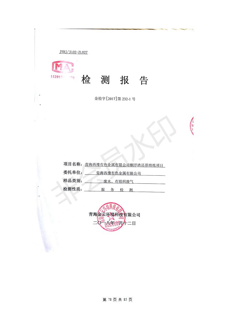 青海西豫有色金屬有限公司銅浮渣還原熔煉工程項目竣工環(huán)境保護驗收監(jiān)測報告公示發(fā)布日期:(2018-11-23) 點擊次數(shù):2508 |
