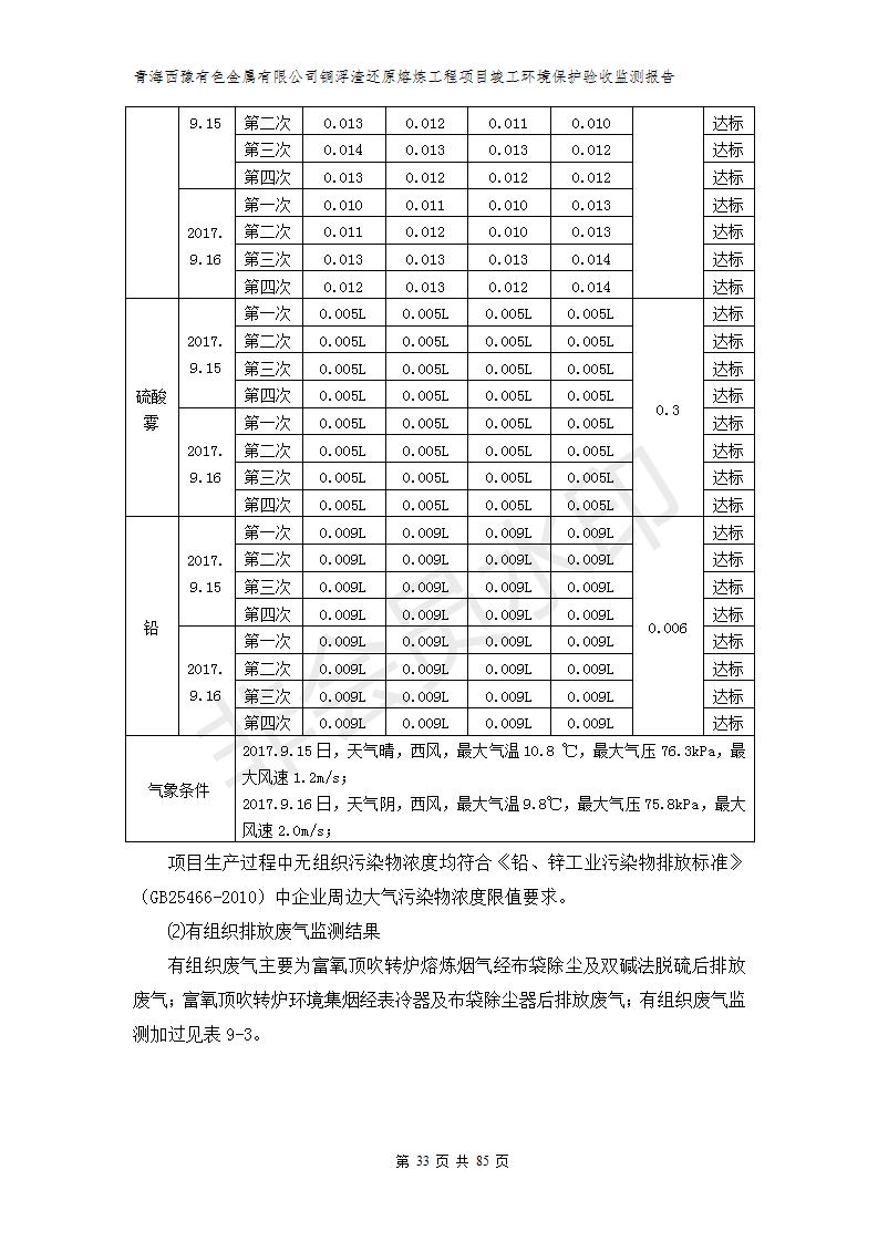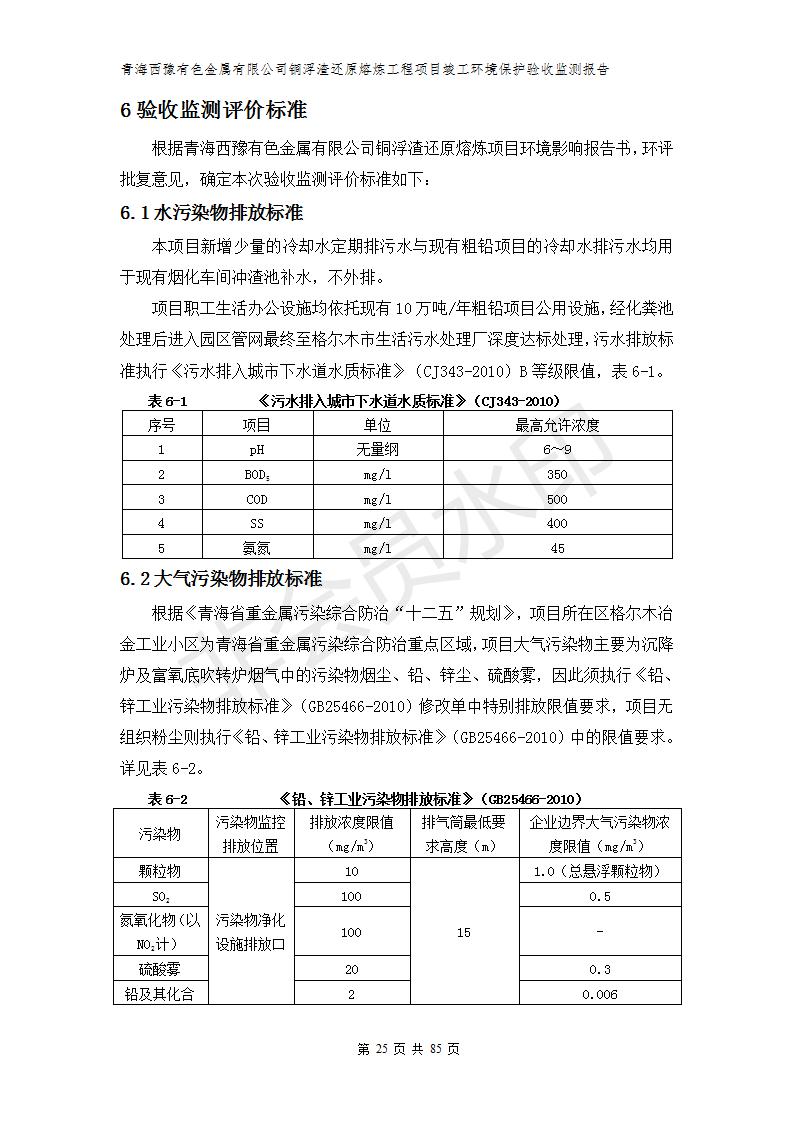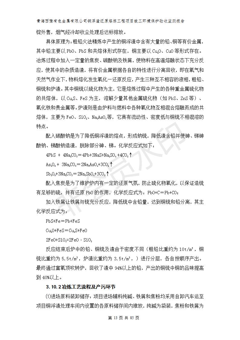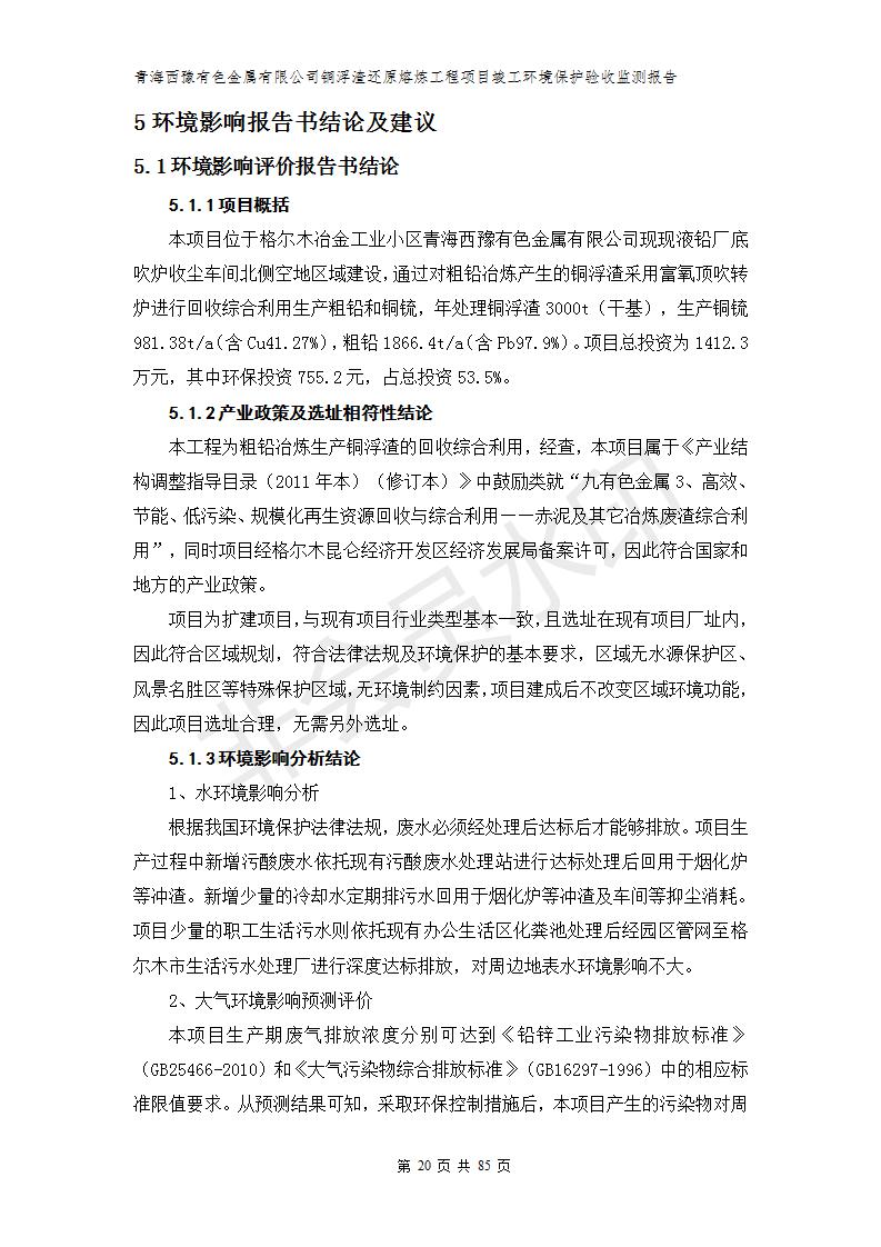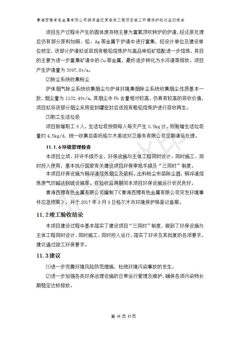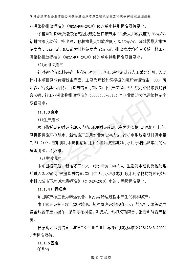 青海西豫有色金屬有限公司銅浮渣還原熔煉工程項目竣工環(huán)境保護驗收監(jiān)測報告公示發(fā)布日期:(2018-11-23) 點擊次數(shù):2508 |