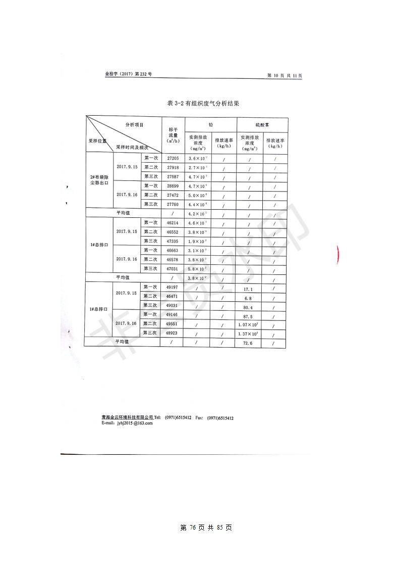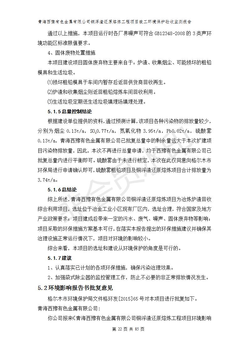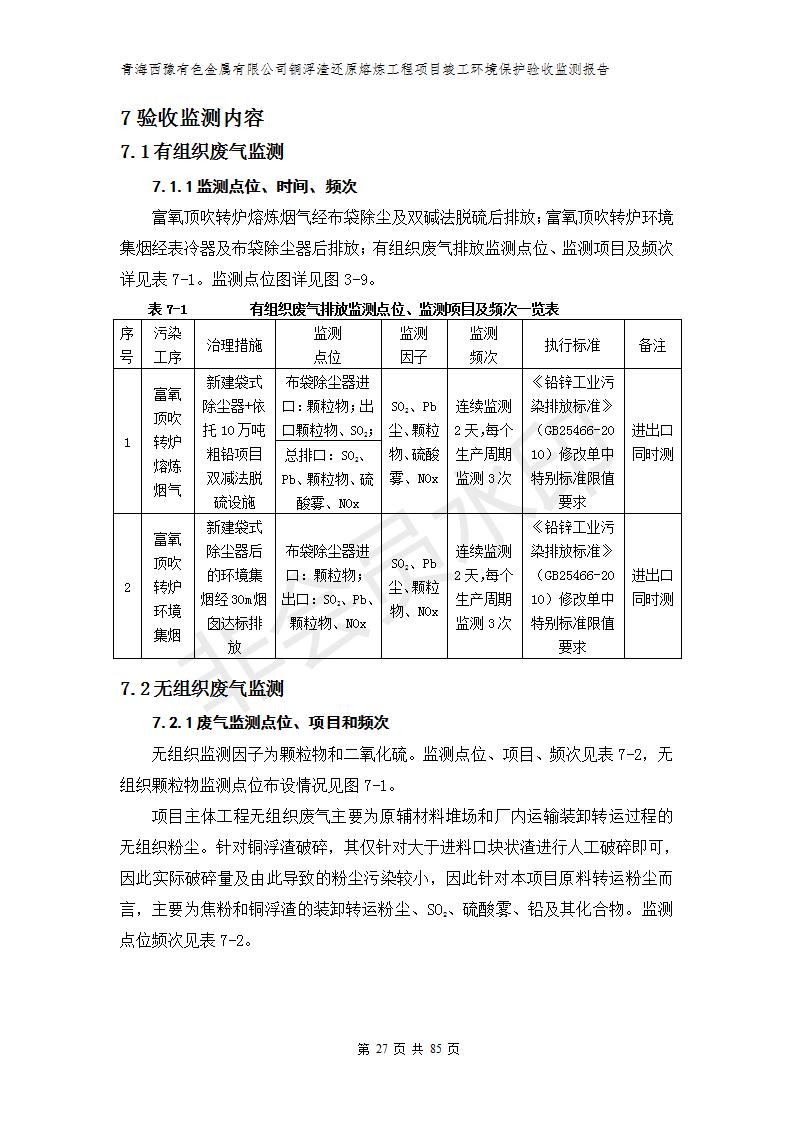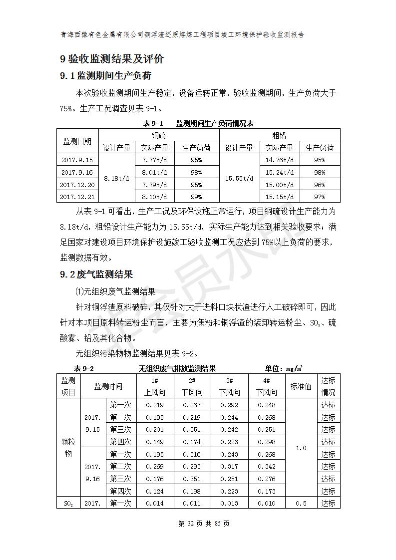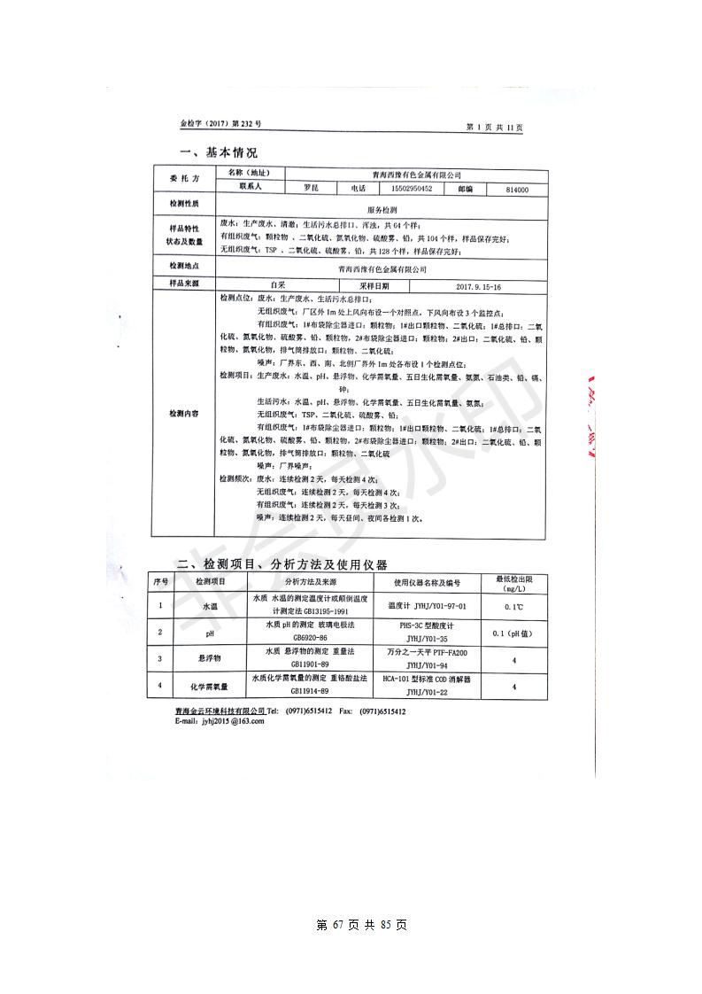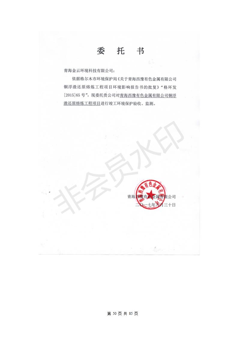 青海西豫有色金屬有限公司銅浮渣還原熔煉工程項目竣工環(huán)境保護驗收監(jiān)測報告公示發(fā)布日期:(2018-11-23) 點擊次數(shù):2508 |
