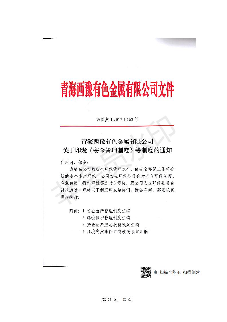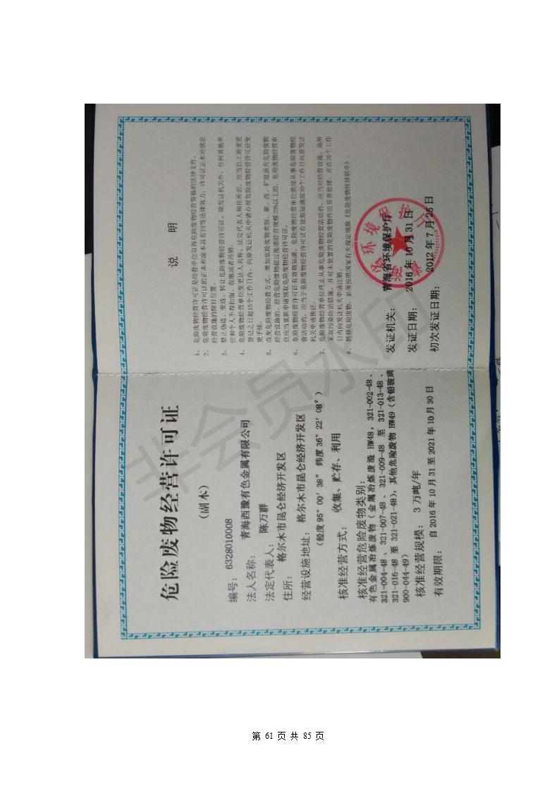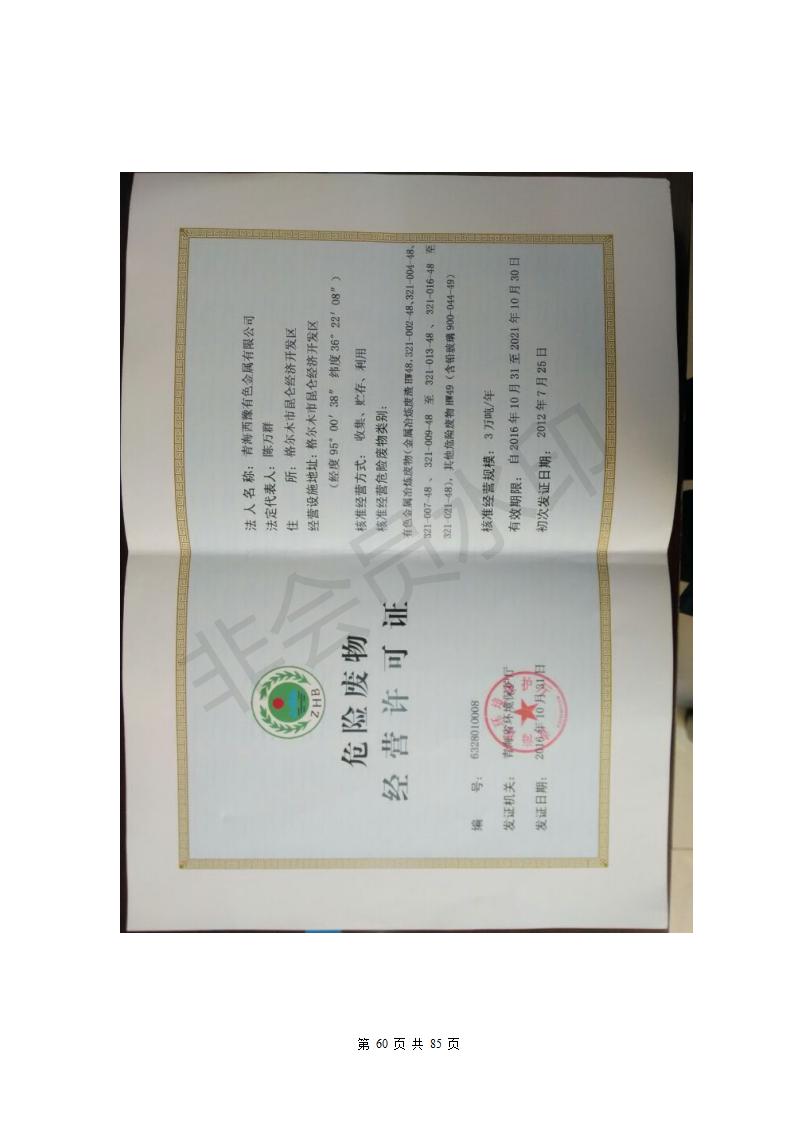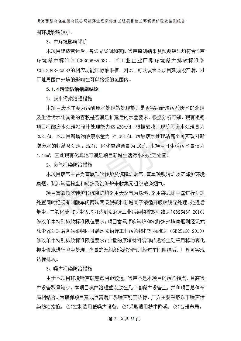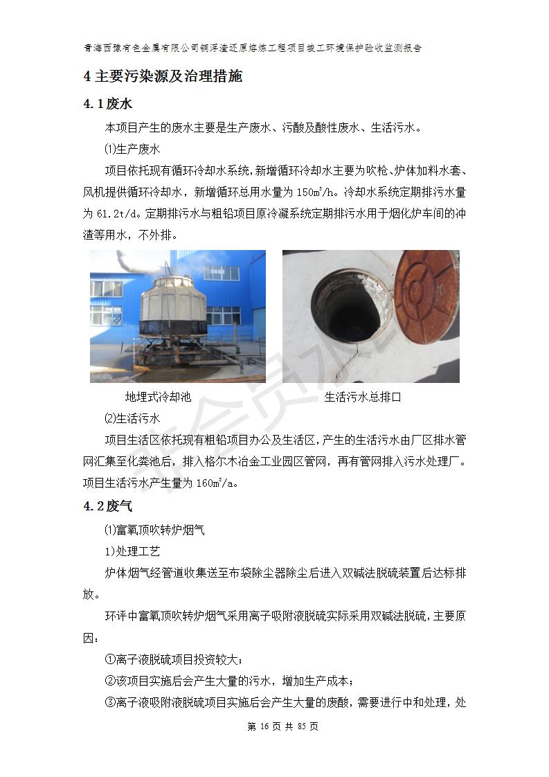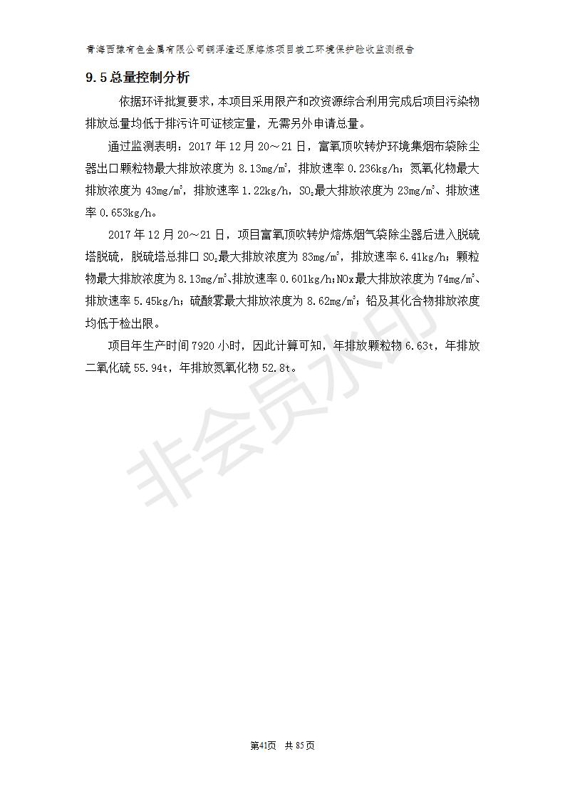 青海西豫有色金屬有限公司銅浮渣還原熔煉工程項目竣工環(huán)境保護驗收監(jiān)測報告公示發(fā)布日期:(2018-11-23) 點擊次數(shù):2508 |