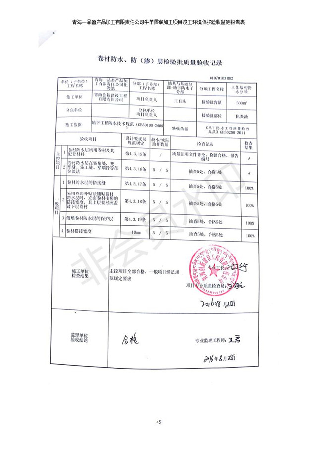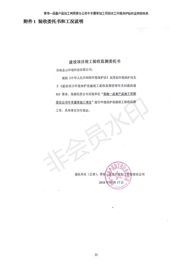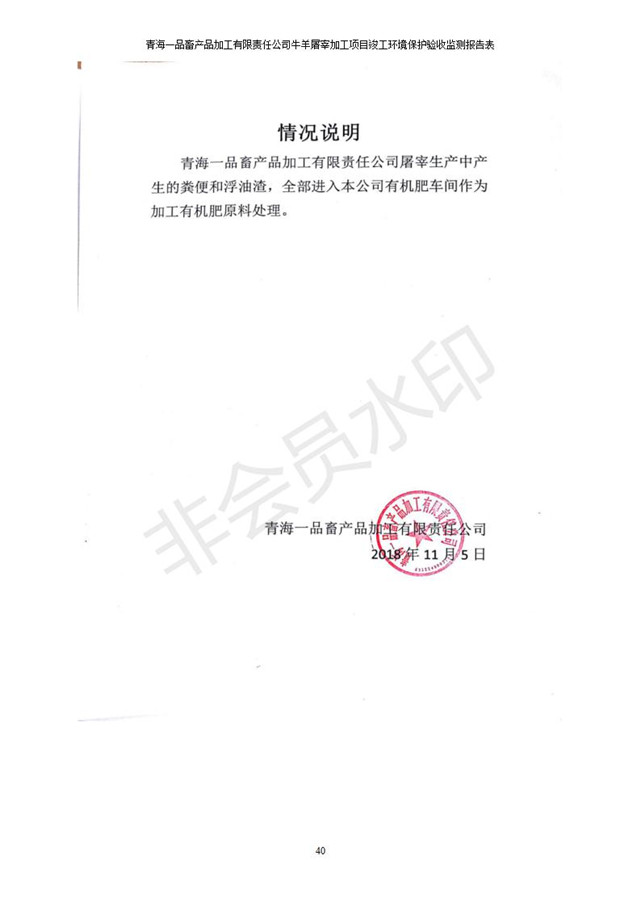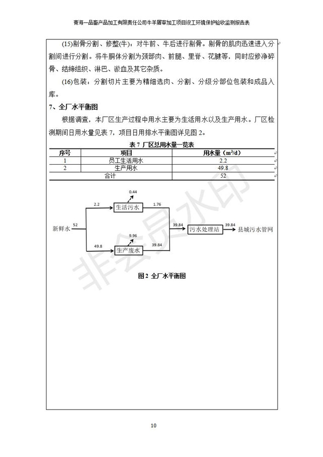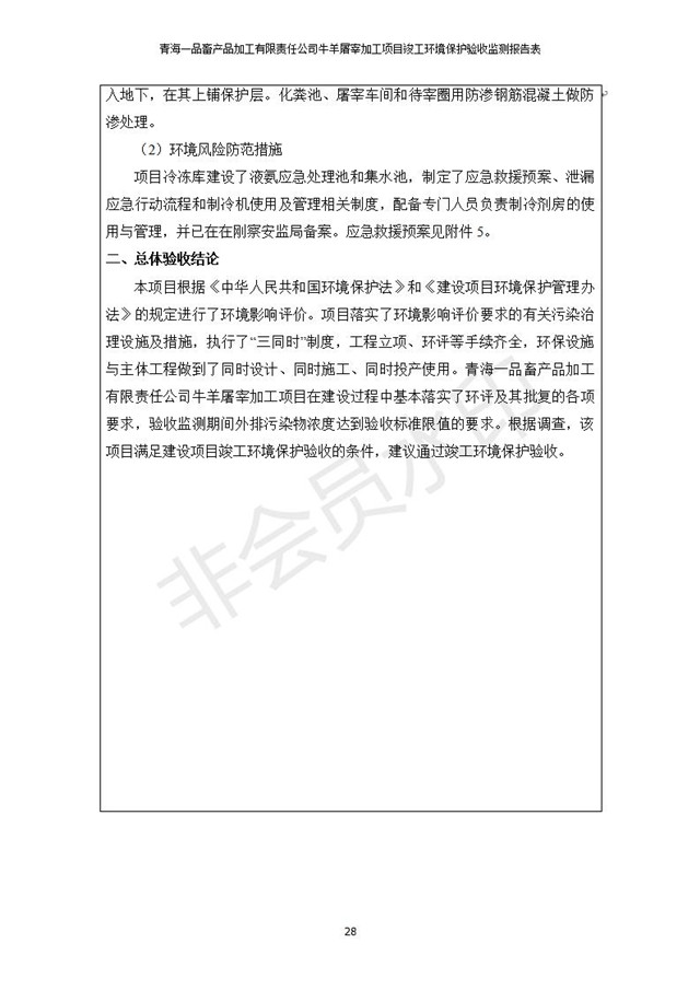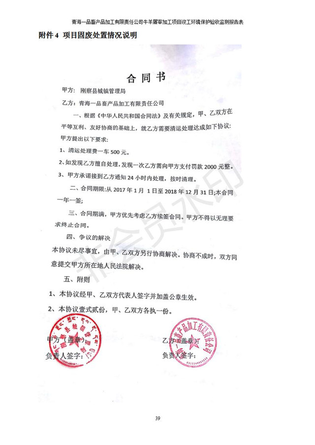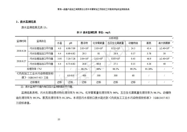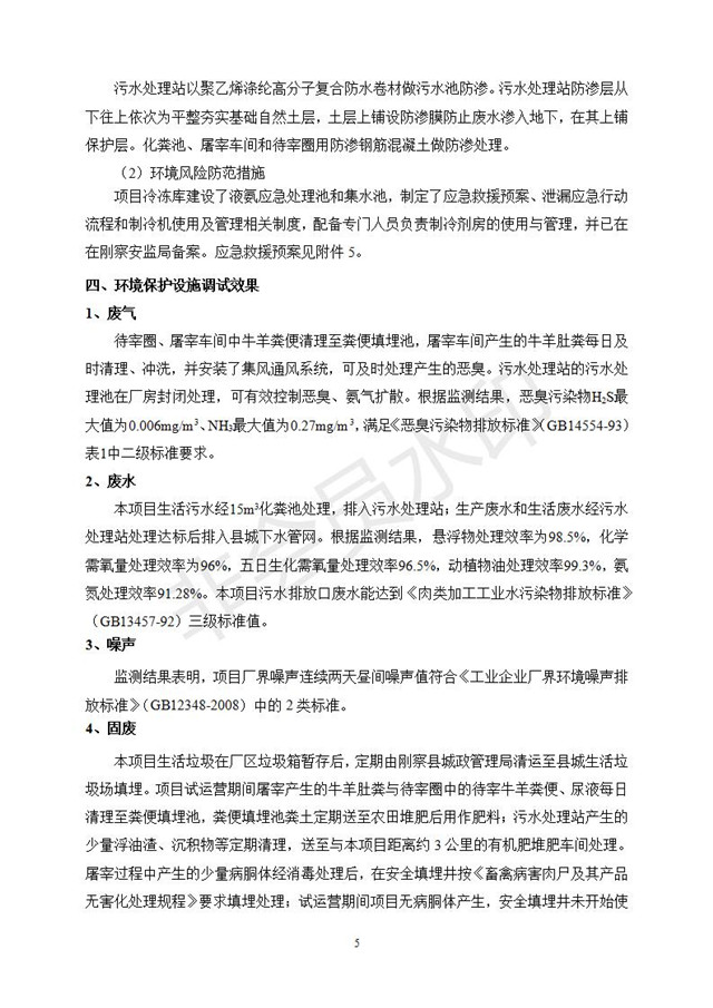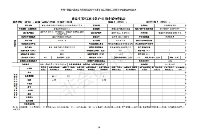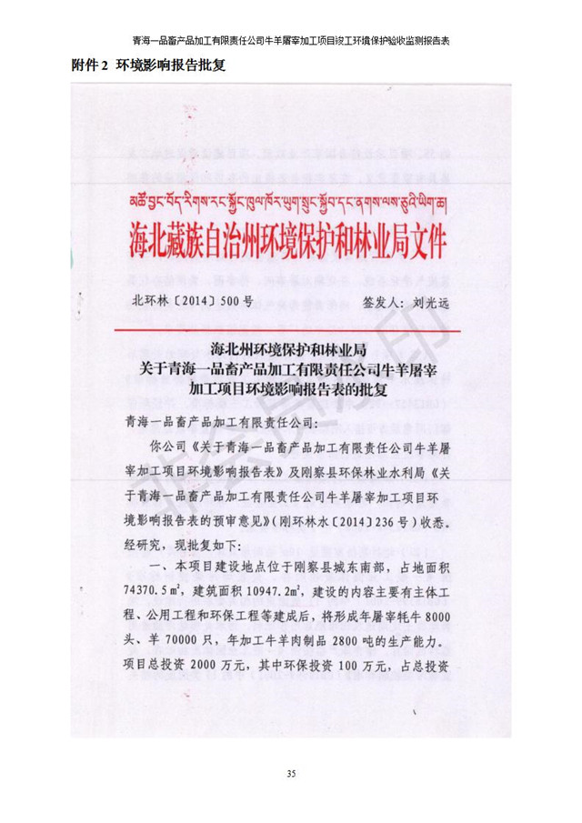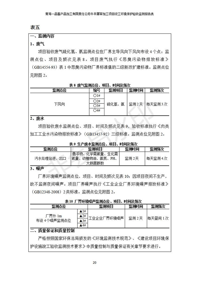 根據(jù)中華人民共和國國務(wù)院令第682號《國務(wù)院關(guān)于修改〈建設(shè)項目環(huán)境保護管理條例〉的決定》和《建設(shè)項目竣工環(huán)境保護驗收暫行辦法》(國務(wù)院令682號),青海一品畜產(chǎn)品加工有限責任公司牛羊屠宰加工項目(包括竣工環(huán)境保護驗收監(jiān)測報告表和驗收意見)公示如下。 一、項目名稱:青海一品畜產(chǎn)品加工有限責任公司牛羊屠宰加工項目竣工環(huán)境保護驗收監(jiān)測報告表 二、地點:剛察縣縣城東大街加油站東側(cè) 三、建設(shè)單位:青海一品畜產(chǎn)品加工有限責任公司 四、建設(shè)內(nèi)容:項目地面積17453m2,項目建設(shè)內(nèi)容包括牛羊屠宰車間、牛羊肉加工車間、冷庫、辦公區(qū)、污水處理站等。 五、聯(lián)系人:張工 七、公示時間:二〇一九年一月十一日至二〇一九年二月七日 公示期間,對上述公示內(nèi)容如有異議,請以書面形式反饋,個人須署真實姓名,單位須加蓋公章。