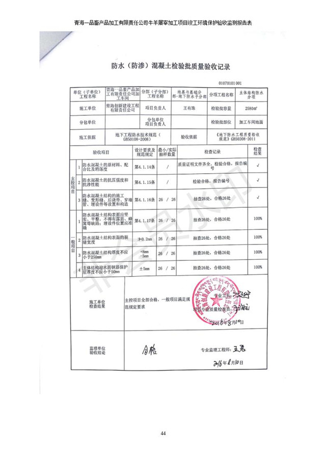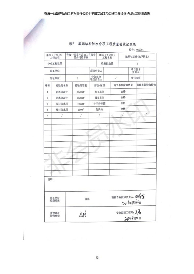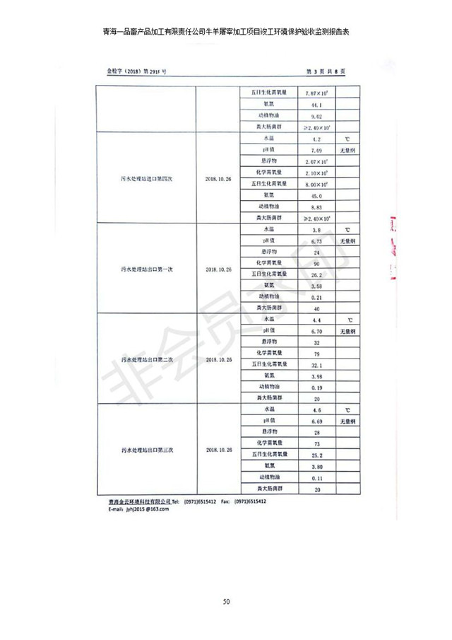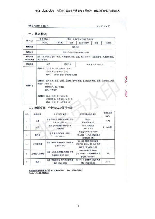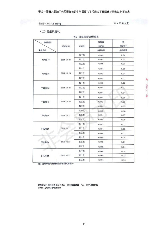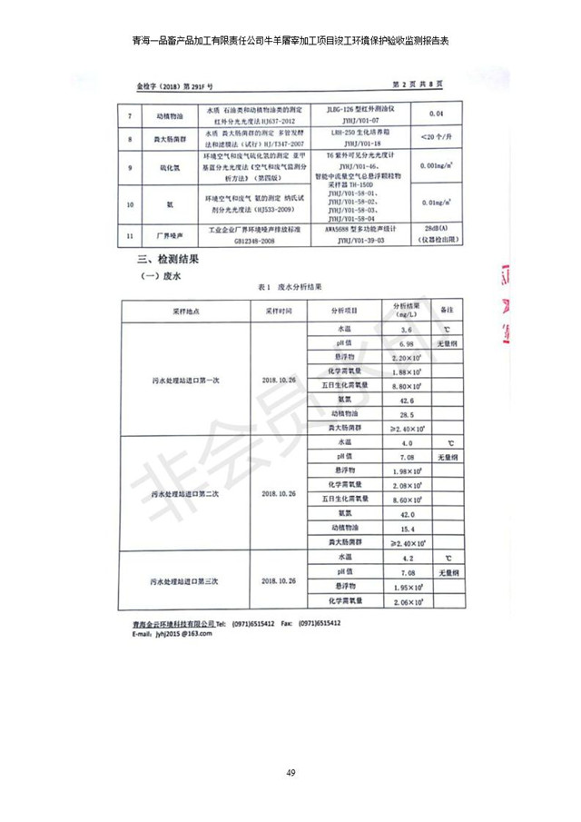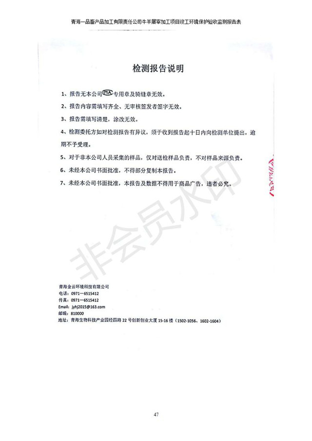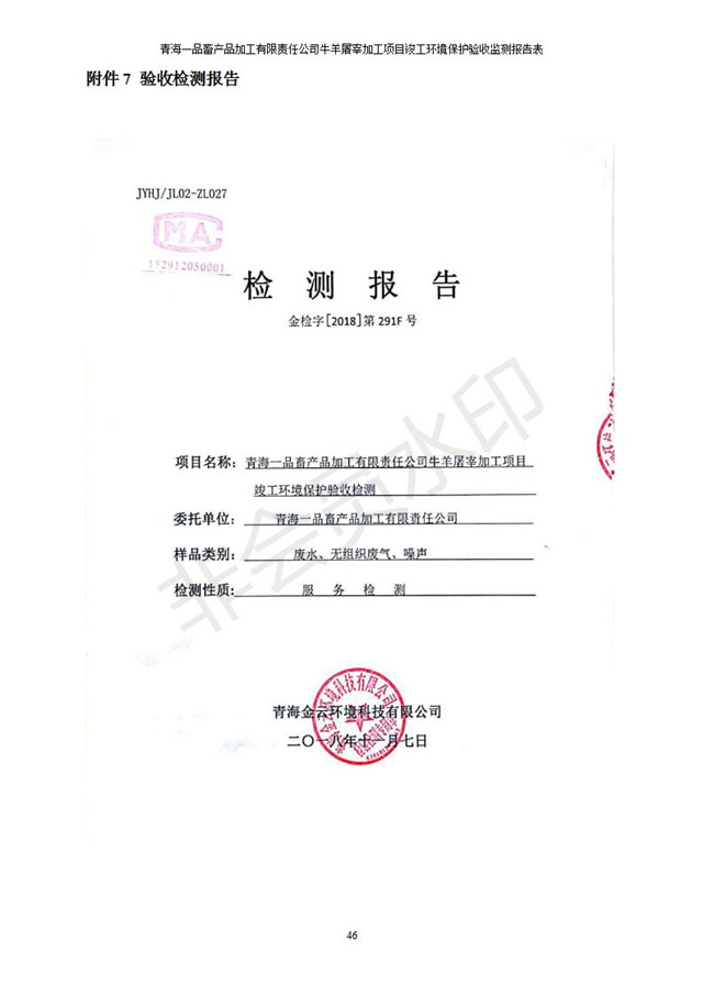 青海一品畜產(chǎn)品加工有限責任公司牛羊屠宰加工項目 竣工環(huán)境保護驗收監(jiān)測報告表公示發(fā)布日期:(2019-1-11) 點擊次數(shù):2958 |