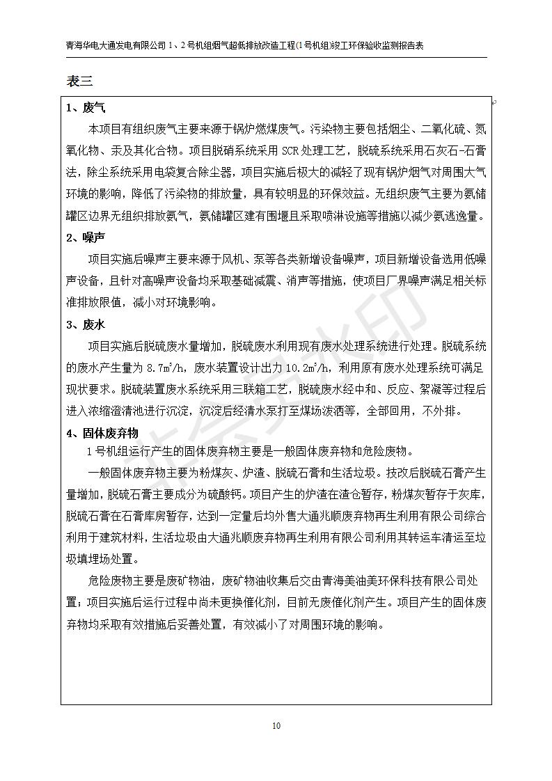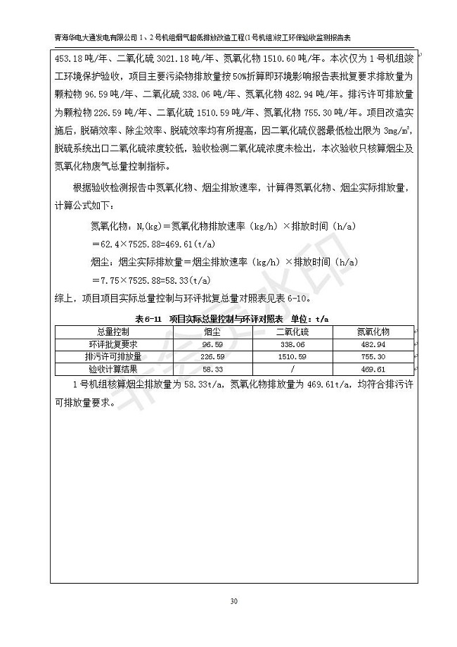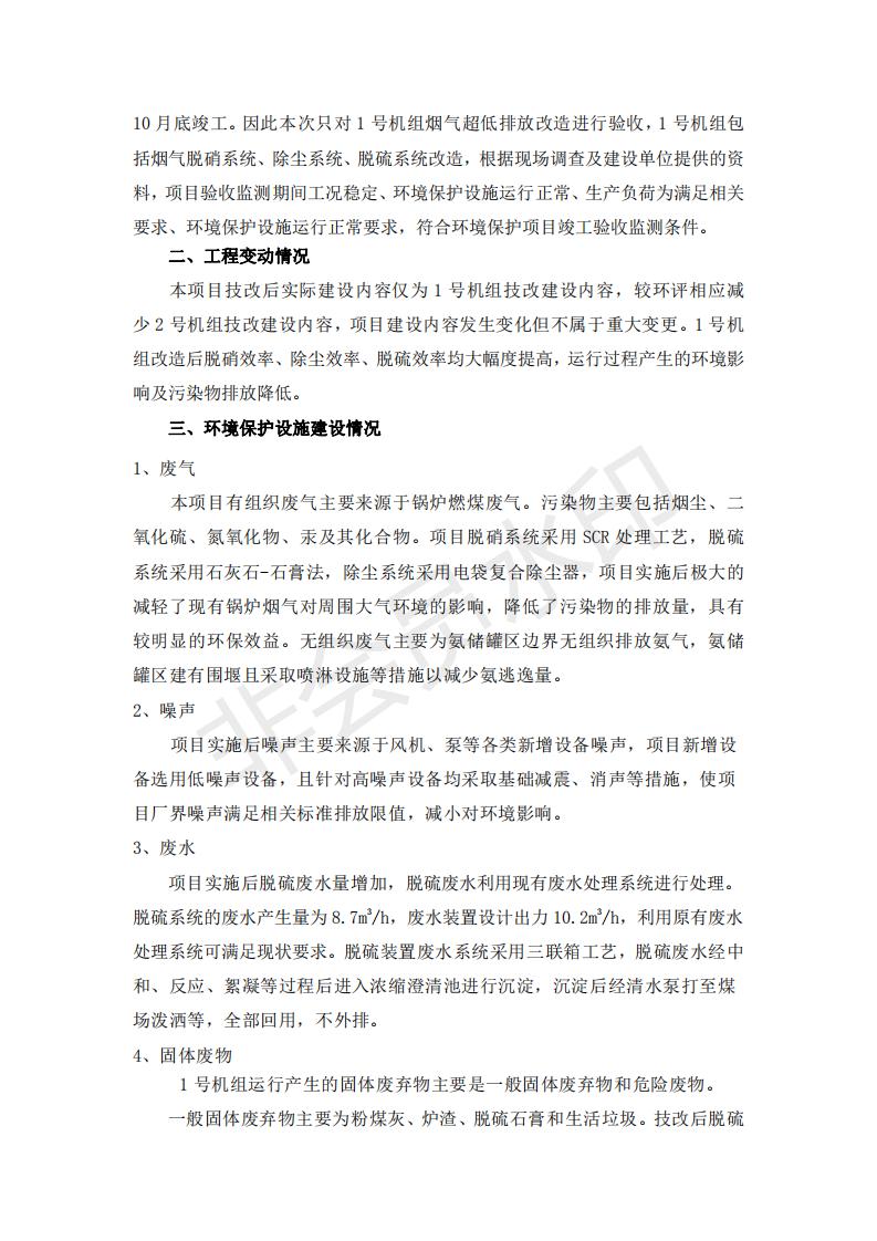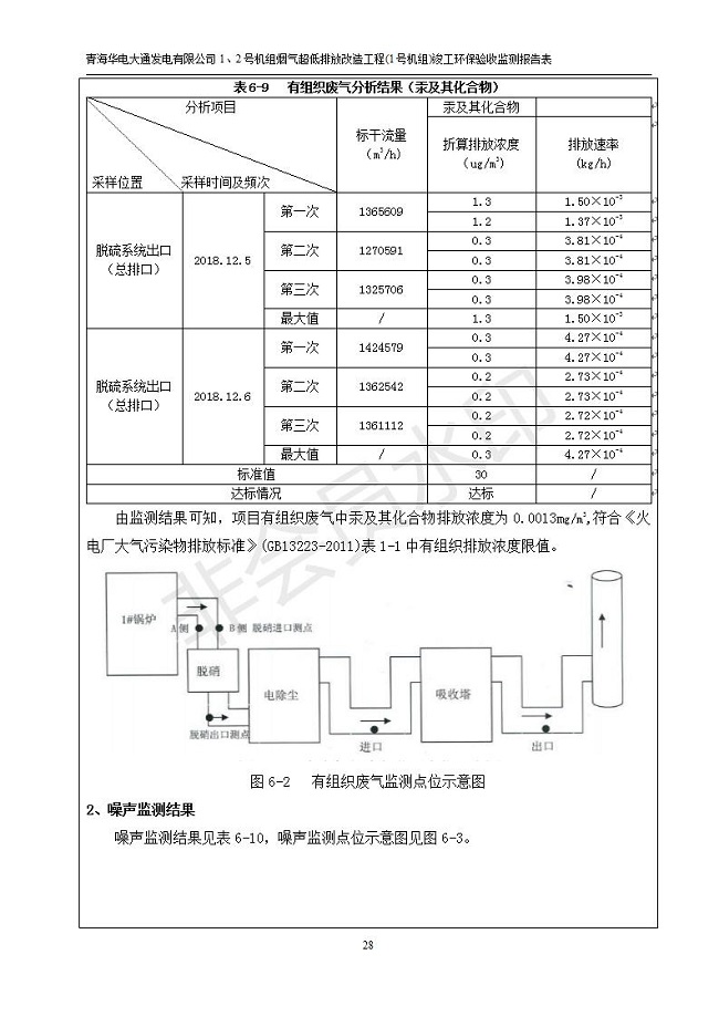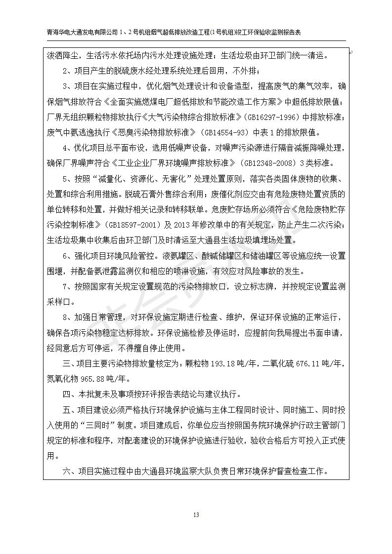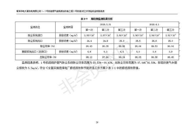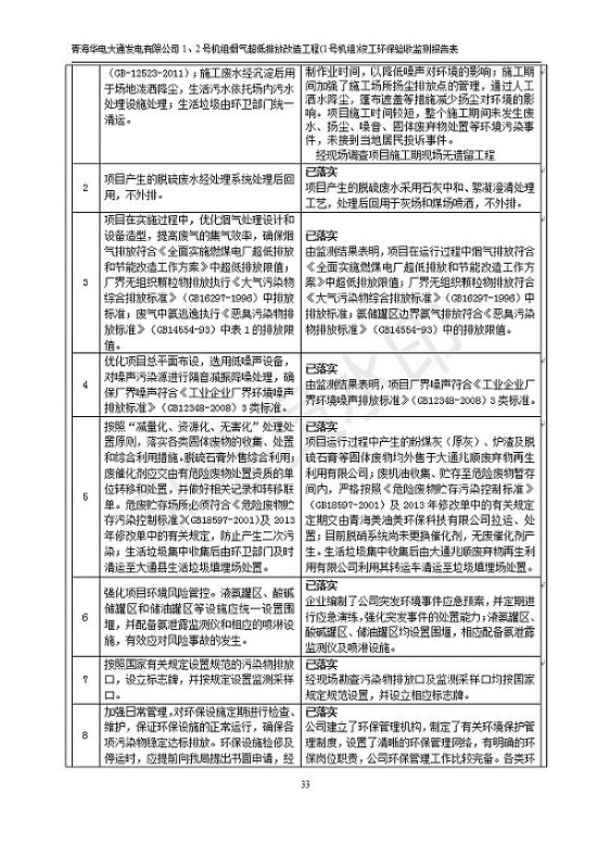 根據(jù)中華人民共和國國務(wù)院令第682號《國務(wù)院關(guān)于修改〈建設(shè)項目環(huán)境保護(hù)管理條例〉的決定》和《建設(shè)項目竣工環(huán)境保護(hù)驗收暫行辦法》(國務(wù)院令682號),青海華電大通發(fā)電有限公司1、2號機(jī)組煙氣超低排放改造工程(1號機(jī)組) (包括竣工環(huán)境保護(hù)驗收監(jiān)測報告表和驗收意見)公示如下。 一、項目名稱:青海華電大通發(fā)電有限公司1、2號機(jī)組煙氣超低排放改造工程(1號機(jī)組) 竣工環(huán)境保護(hù)驗收監(jiān)測報告表 二、地點:青海省西寧市大通縣寧張公路31公里處 三、建設(shè)單位:青海華電大通發(fā)電有限公司 四、建設(shè)內(nèi)容:1號機(jī)組煙氣超低排放改造,1號機(jī)組改造內(nèi)容為脫硫系統(tǒng)保留原脫硫裝置作為一級塔,新建二級合金托盤塔串聯(lián)吸收塔;對原“1+2”電袋復(fù)合除塵器的一電場電源進(jìn)行改造,對布袋除塵器濾袋進(jìn)行更換;對原脫硝系統(tǒng)選擇性催化還原法(SCR)脫硝工藝加裝備用催化劑,每層催化劑增加聲波吹灰器,優(yōu)化SCR反應(yīng)器入口導(dǎo)流板。 五、聯(lián)系人:張工 六、聯(lián)系電 話:0971-6515411 七、公示時間:二〇一九年二月十三日至二〇一九年三月十二日 公示期間,對上述公示內(nèi)容如有異議,請以書面形式反饋,個人須署真實姓名,單位須加蓋公章。