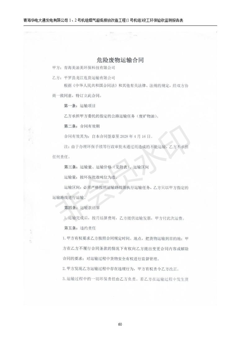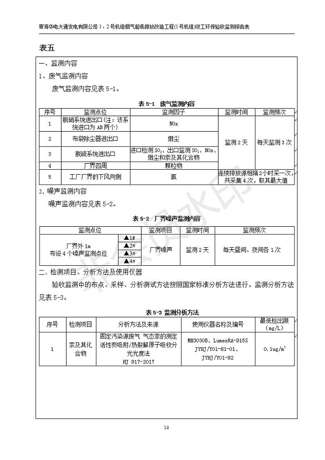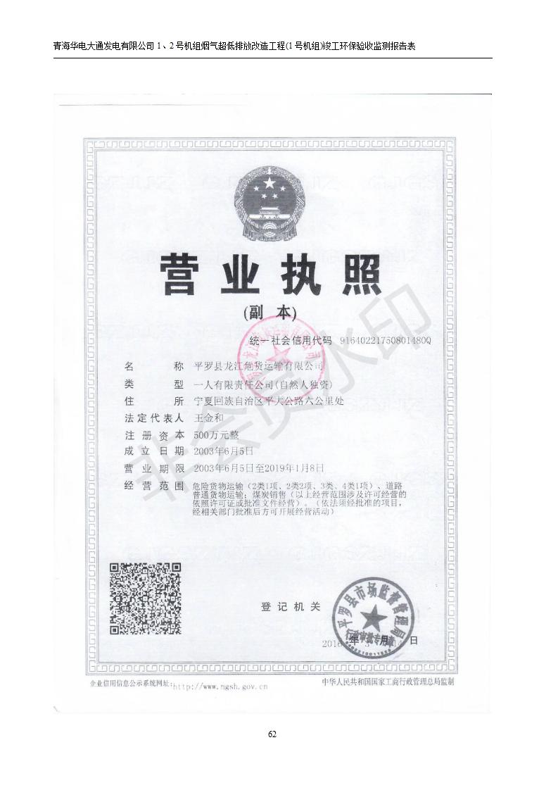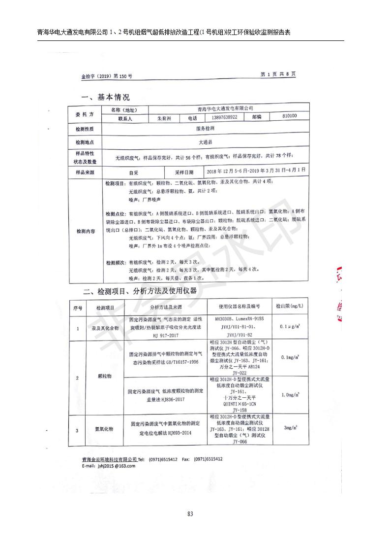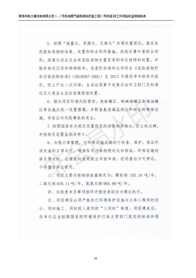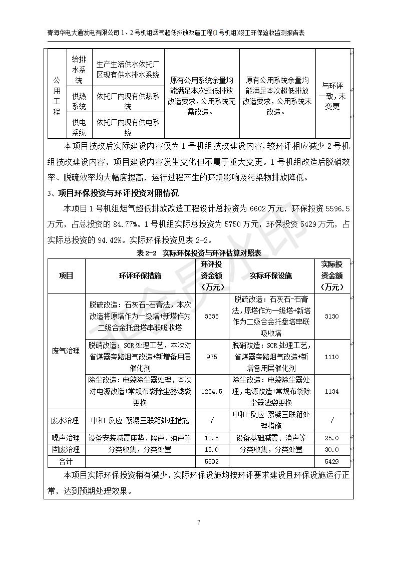 根據(jù)中華人民共和國國務(wù)院令第682號《國務(wù)院關(guān)于修改〈建設(shè)項目環(huán)境保護(hù)管理條例〉的決定》和《建設(shè)項目竣工環(huán)境保護(hù)驗收暫行辦法》(國務(wù)院令682號),青海華電大通發(fā)電有限公司1、2號機(jī)組煙氣超低排放改造工程(1號機(jī)組) (包括竣工環(huán)境保護(hù)驗收監(jiān)測報告表和驗收意見)公示如下。 一、項目名稱:青海華電大通發(fā)電有限公司1、2號機(jī)組煙氣超低排放改造工程(1號機(jī)組) 竣工環(huán)境保護(hù)驗收監(jiān)測報告表 二、地點:青海省西寧市大通縣寧張公路31公里處 三、建設(shè)單位:青海華電大通發(fā)電有限公司 四、建設(shè)內(nèi)容:1號機(jī)組煙氣超低排放改造,1號機(jī)組改造內(nèi)容為脫硫系統(tǒng)保留原脫硫裝置作為一級塔,新建二級合金托盤塔串聯(lián)吸收塔;對原“1+2”電袋復(fù)合除塵器的一電場電源進(jìn)行改造,對布袋除塵器濾袋進(jìn)行更換;對原脫硝系統(tǒng)選擇性催化還原法(SCR)脫硝工藝加裝備用催化劑,每層催化劑增加聲波吹灰器,優(yōu)化SCR反應(yīng)器入口導(dǎo)流板。 五、聯(lián)系人:張工 六、聯(lián)系電 話:0971-6515411 七、公示時間:二〇一九年二月十三日至二〇一九年三月十二日 公示期間,對上述公示內(nèi)容如有異議,請以書面形式反饋,個人須署真實姓名,單位須加蓋公章。