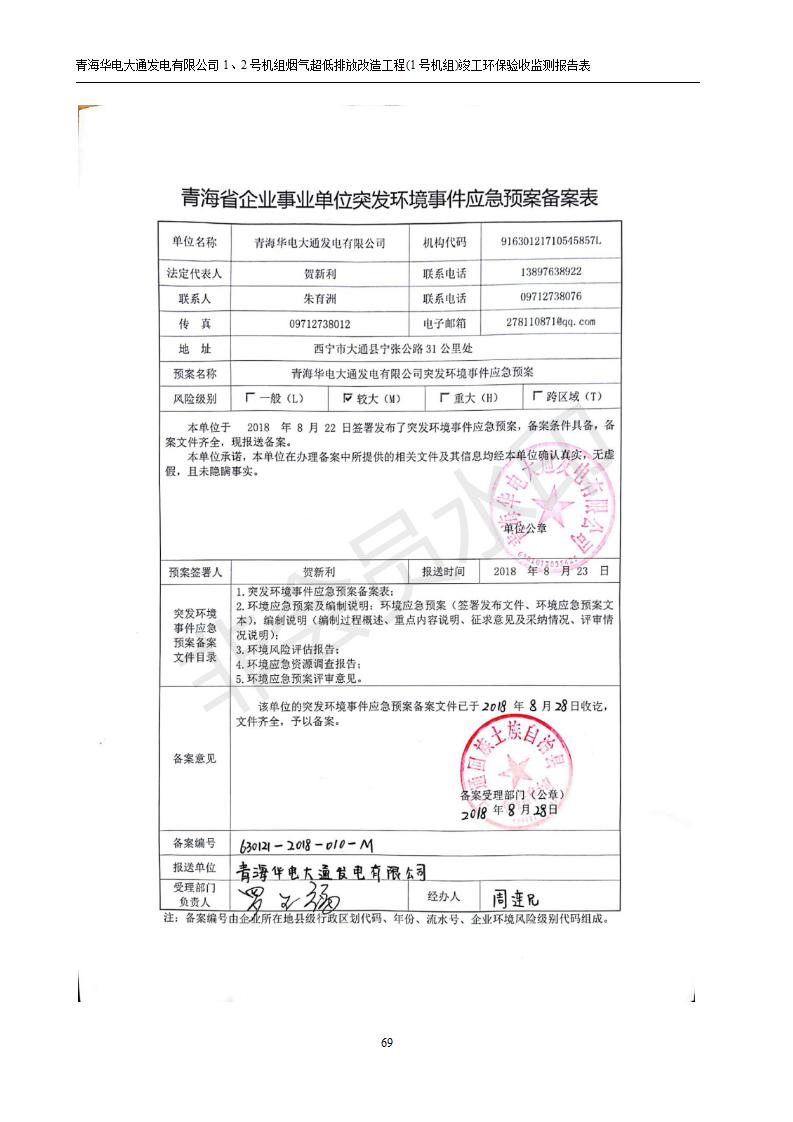 青海華電大通發(fā)電有限公司1、2號機(jī)組煙氣超低排放改造工程(1號機(jī)組) 竣工環(huán)境保護(hù)驗收監(jiān)測報告表公示發(fā)布日期:(2019-2-13) 點擊次數(shù):2487 |