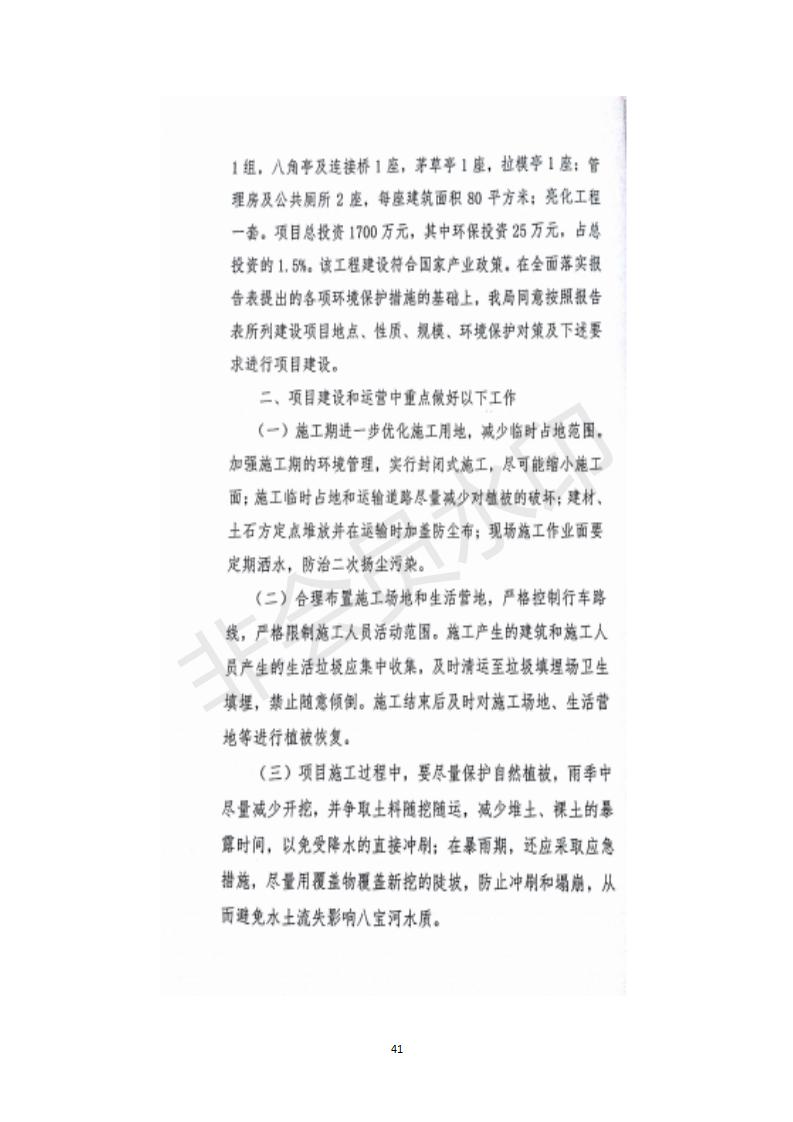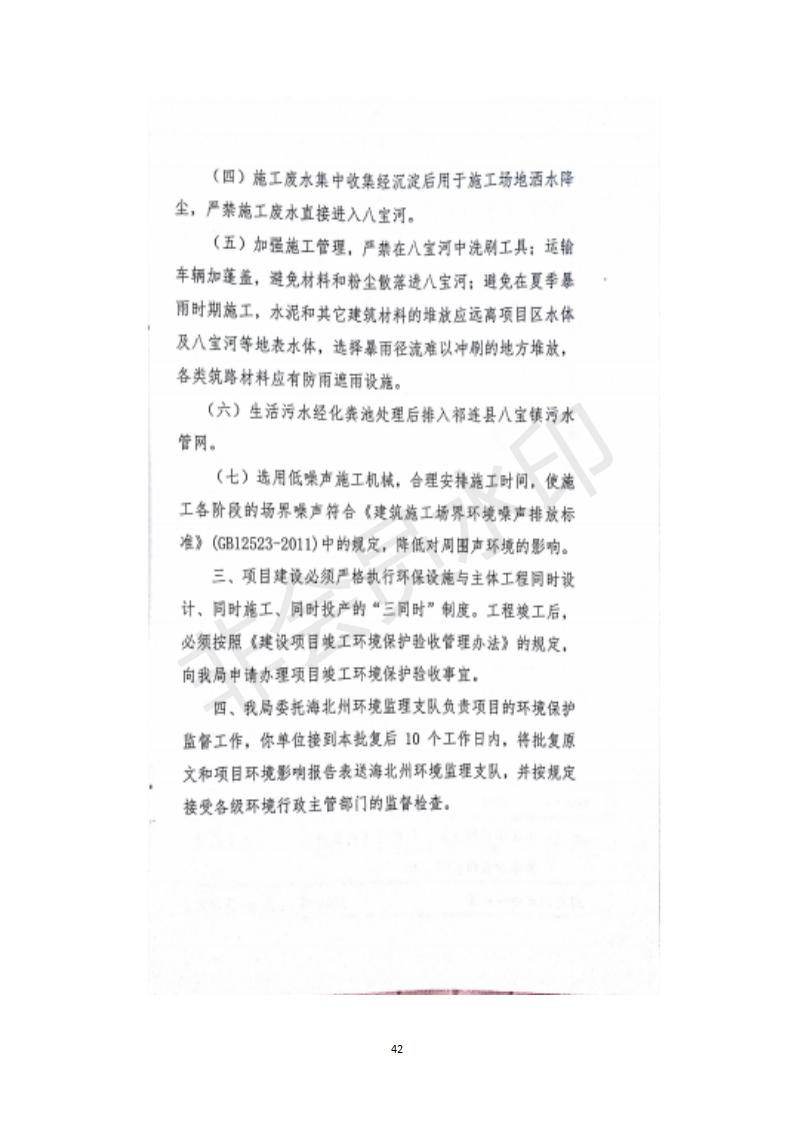 根據(jù)中華人民共和國(guó)務(wù)院令第682號(hào)《國(guó)務(wù)院關(guān)于修改〈建設(shè)項(xiàng)目環(huán)境保護(hù)管理?xiàng)l例〉的決定》和《建設(shè)項(xiàng)目竣工環(huán)境保護(hù)驗(yàn)收暫行辦法》(國(guó)務(wù)院令682號(hào)),祁連縣二寺灘公園項(xiàng)目竣工環(huán)境保護(hù)驗(yàn)收內(nèi)容(包括竣工環(huán)境保護(hù)驗(yàn)收調(diào)查表和驗(yàn)收意見)公示如下。 一、項(xiàng)目名稱:祁連縣二寺灘公園項(xiàng)目竣工環(huán)境保護(hù)驗(yàn)收調(diào)查表 二、地點(diǎn):祁連縣八寶鎮(zhèn)城東生態(tài)組團(tuán)片區(qū) 三、建設(shè)單位:祁連縣環(huán)境保護(hù)和林業(yè)局 四、建設(shè)內(nèi)容:公園廣場(chǎng)入口、水景景觀、輔助工程、綠化建設(shè) 五、公示時(shí)間:二〇一九年三月十一日至二〇一九年四月八日 六、聯(lián)系人:張工 公示期間,對(duì)上述公示內(nèi)容如有異議,請(qǐng)以書面形式反饋,個(gè)人須署真實(shí)姓名,單位須加蓋公章。