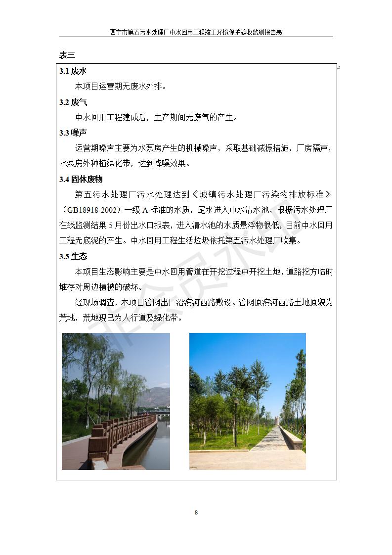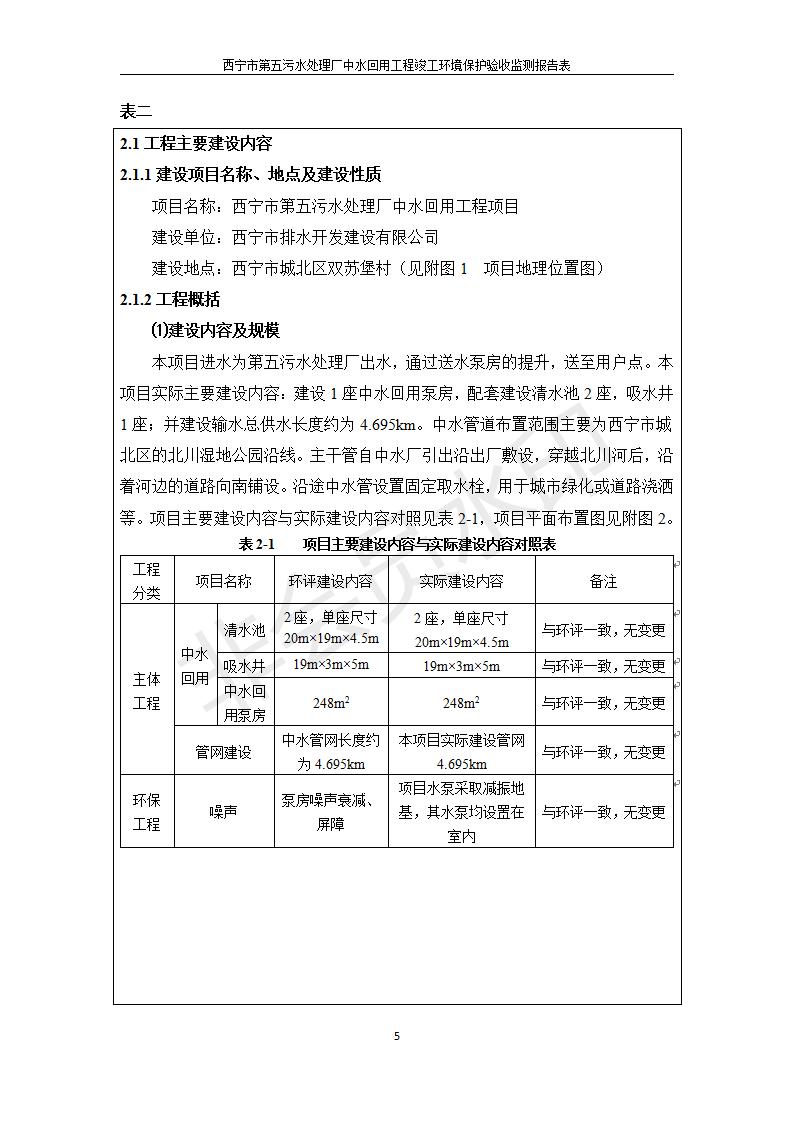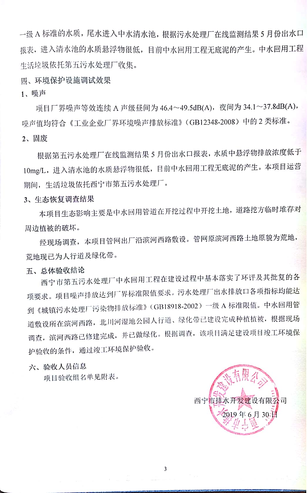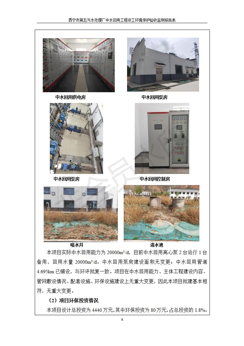 根據(jù)中華人民共和國國務(wù)院令第682號《國務(wù)院關(guān)于修改〈建設(shè)項目環(huán)境保護管理條例〉的決定》和《建設(shè)項目竣工環(huán)境保護驗收暫行辦法》(國務(wù)院令682號),西寧市第五污水處理廠中水回用工程建設(shè)項目(包括竣工環(huán)境保護驗收監(jiān)測報告表和驗收意見)公示如下。 一、項目名稱:西寧市第五污水處理廠中水回用工程建設(shè)項目 二、地點:西寧市城北區(qū)廿十里鋪雙蘇堡 三、建設(shè)單位:西寧市排水開發(fā)建設(shè)有限公司