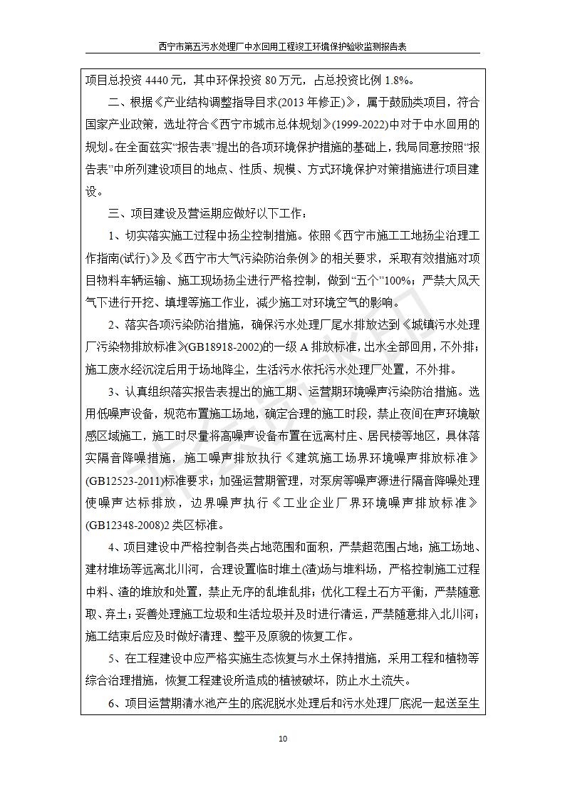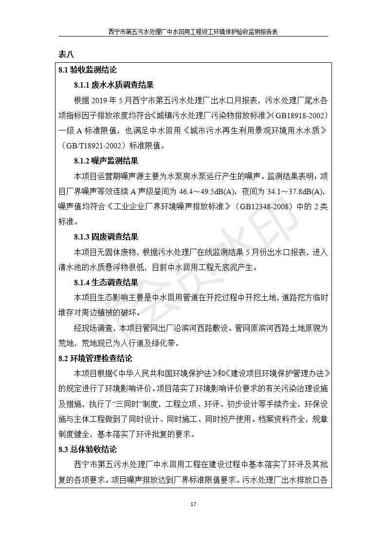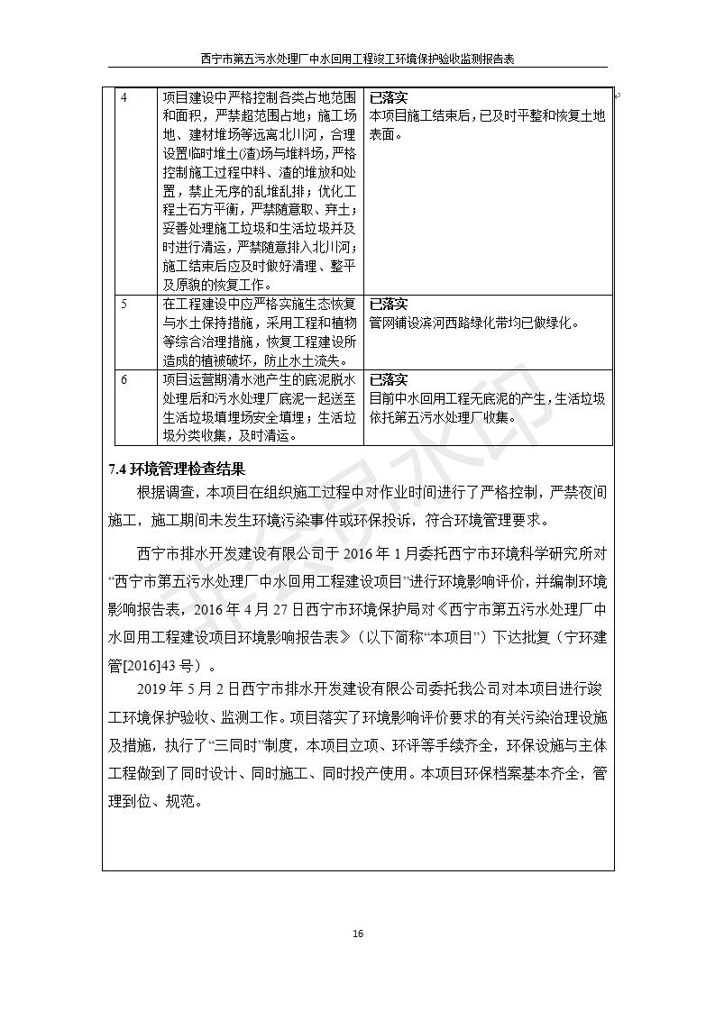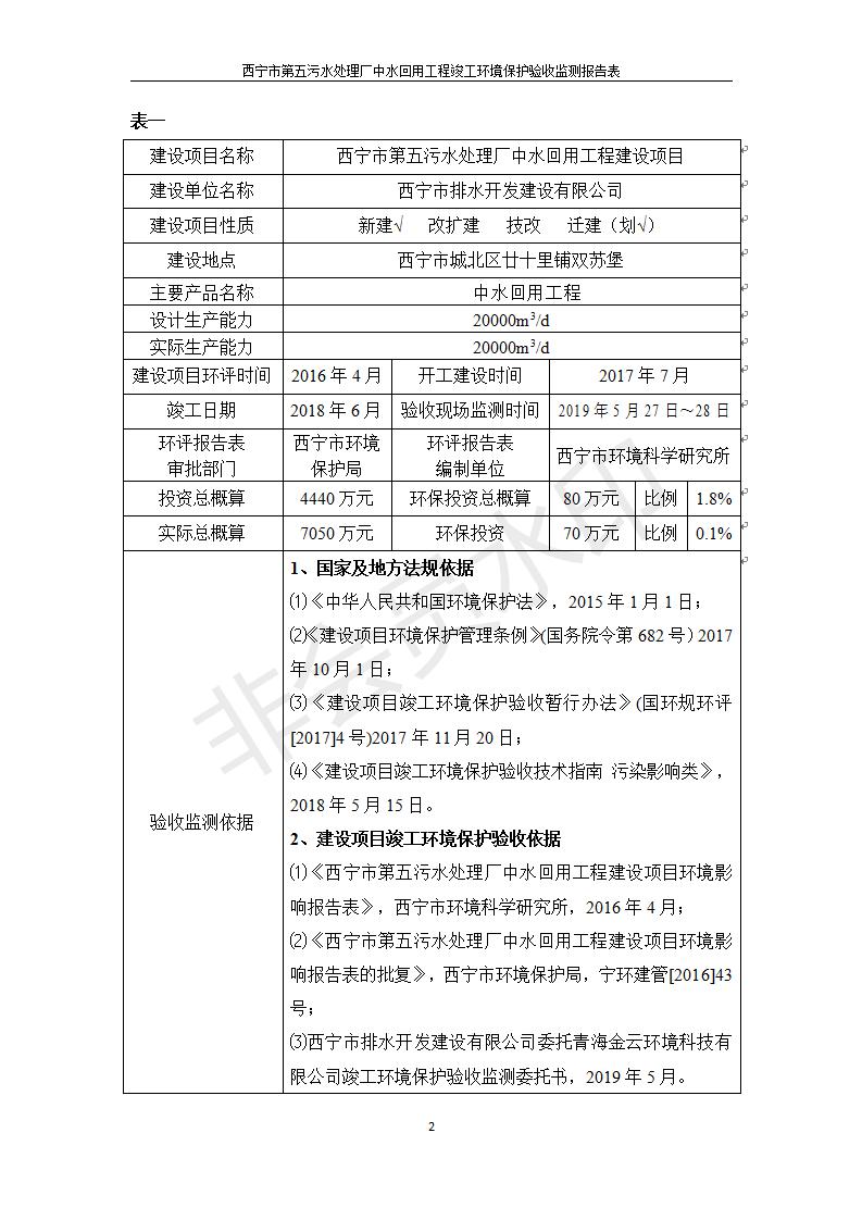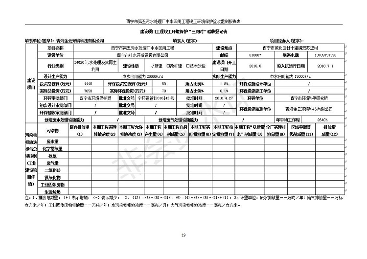 西寧市第五污水處理廠中水回用工程建設(shè)項目竣工環(huán)境保護驗收監(jiān)測報告表公示發(fā)布日期:(2019-7-10) 點擊次數(shù):2212 |