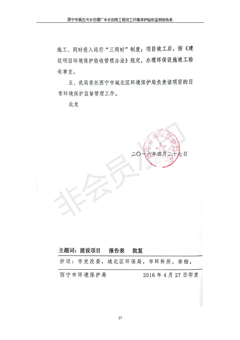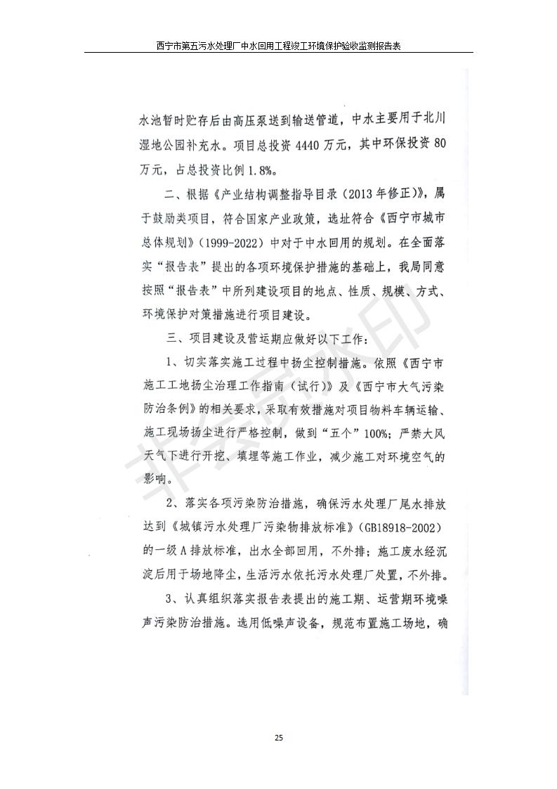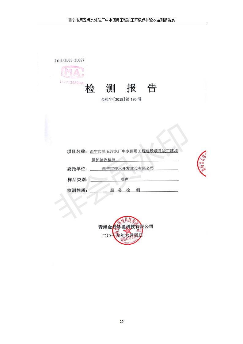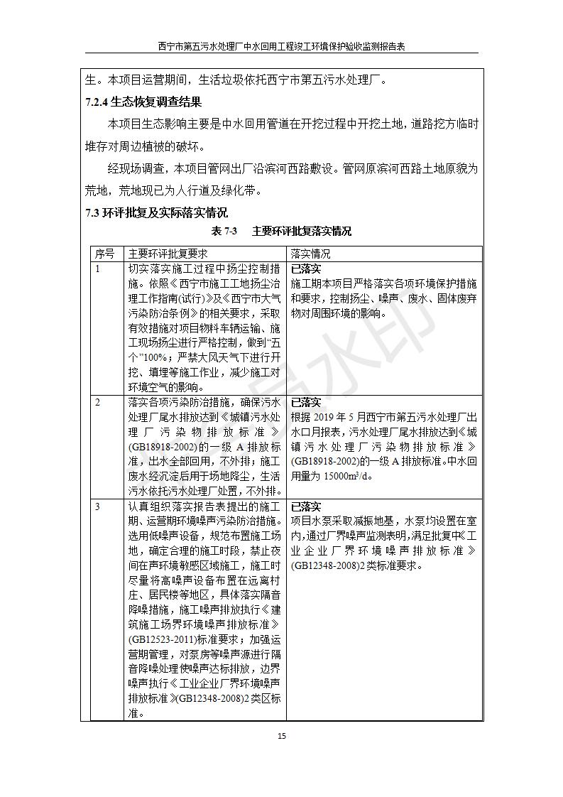 西寧市第五污水處理廠中水回用工程建設(shè)項目竣工環(huán)境保護驗收監(jiān)測報告表公示發(fā)布日期:(2019-7-10) 點擊次數(shù):2212 |