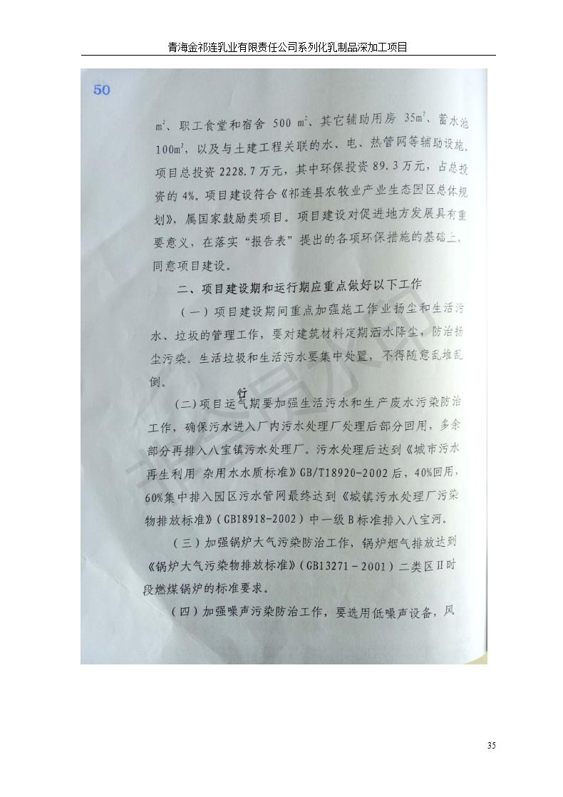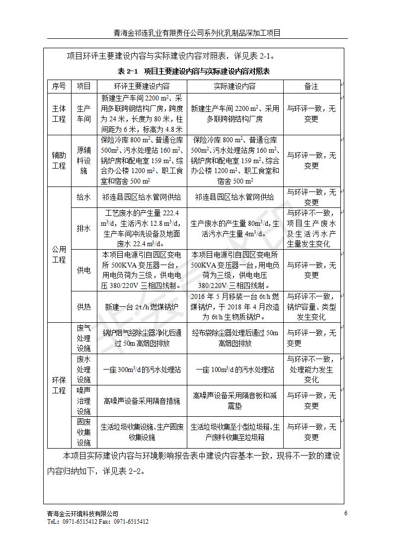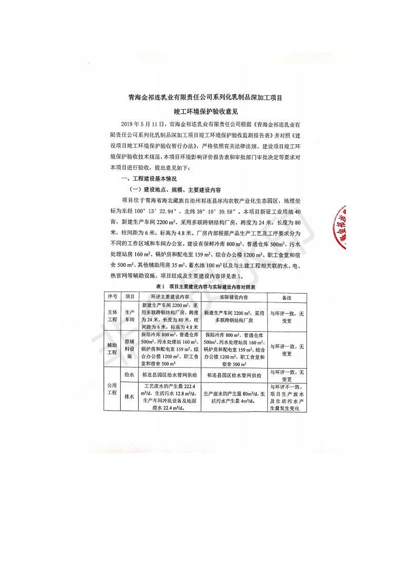根據(jù)中華人民共和國國務(wù)院令第682號(hào)《國務(wù)院關(guān)于修改〈建設(shè)項(xiàng)目環(huán)境保護(hù)管理?xiàng)l例〉的決定》和《建設(shè)項(xiàng)目竣工環(huán)境保護(hù)驗(yàn)收暫行辦法》(國務(wù)院令682號(hào)),青海金祁連乳業(yè)有限責(zé)任公司系列化乳制品深加工項(xiàng)目(包括竣工環(huán)境保護(hù)驗(yàn)收監(jiān)測報(bào)告表和驗(yàn)收意見)公示如下。 一、項(xiàng)目名稱:青海金祁連乳業(yè)有限責(zé)任公司系列化乳制品深加工項(xiàng)目 二、地點(diǎn):海北藏族自治州祁連縣冰溝農(nóng)牧產(chǎn)業(yè)化生態(tài)園區(qū) 三、建設(shè)單位:青海金祁連乳業(yè)有限責(zé)任公司 四、建設(shè)內(nèi)容:本項(xiàng)目新征工業(yè)用地40畝,新建生產(chǎn)車間2200 m2、采用多聯(lián)跨鋼結(jié)構(gòu)廠房,跨度為24米,長度為80米,柱間距為6米,標(biāo)高為4.8米。廠房內(nèi)部根據(jù)產(chǎn)品生產(chǎn)工藝及工序要求分為不同的工作區(qū)域和車間辦公室。建設(shè)有保鮮冷庫800 m2、普通倉庫500m2、污水處理站房160 m2、鍋爐房和配電室159 m2、綜合辦公樓1200 m2、職工食堂和宿舍500 m2、其他輔助用房35 m2、蓄水池100 m2以及與土建工程相關(guān)聯(lián)的水、電、熱官網(wǎng)等輔助設(shè)施。 五、聯(lián)系人:張工 六、聯(lián)系電 話:0971-6515411 七、公示時(shí)間:二〇一九年七月十日至二〇一九年八月六日 公示期間,對(duì)上述公示內(nèi)容如有異議,請(qǐng)以書面形式反饋,個(gè)人須署真實(shí)姓名,單位須加蓋公章。