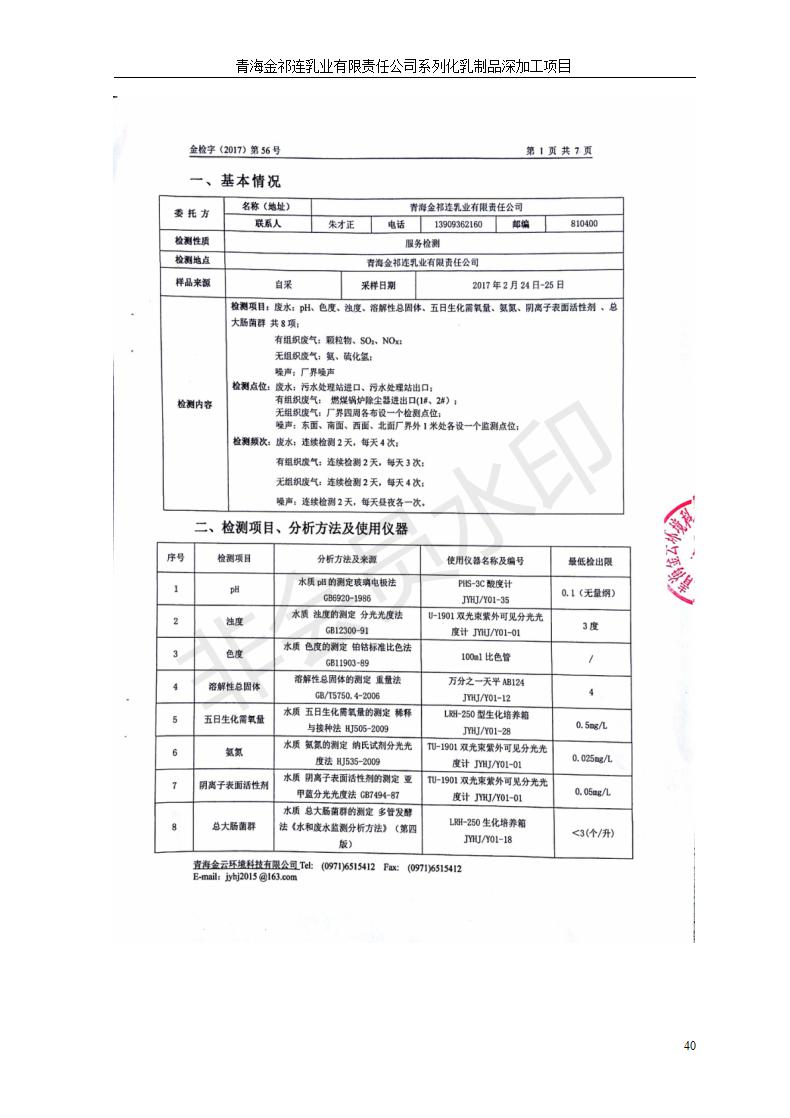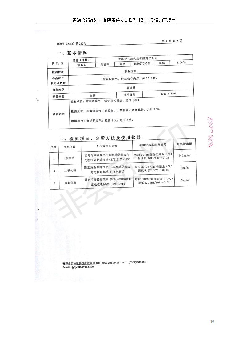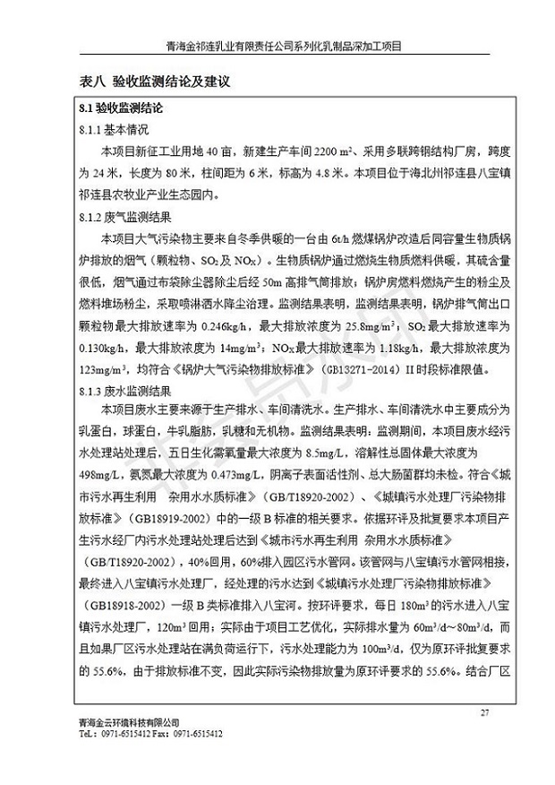 青海金祁連乳業(yè)有限責(zé)任公司系列化乳制品深加工項(xiàng)目竣工環(huán)境保護(hù)驗(yàn)收監(jiān)測報(bào)告表公示發(fā)布日期:(2019-7-10) 點(diǎn)擊次數(shù):2095 |