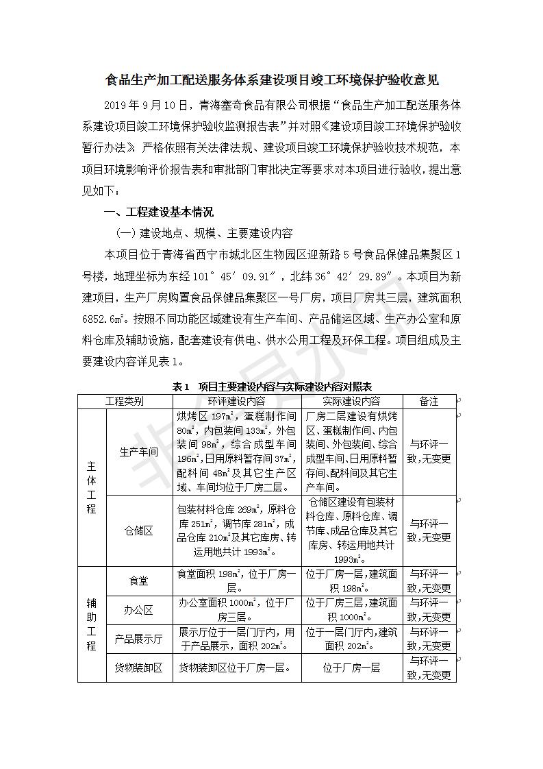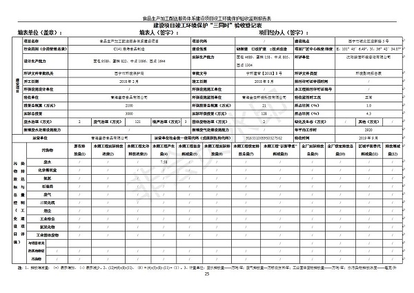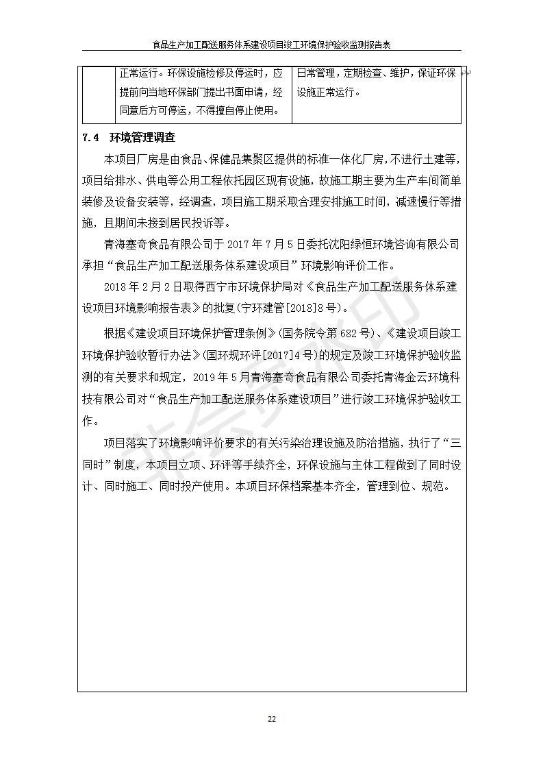 根據(jù)中華人民共和國國務(wù)院令第682號《國務(wù)院關(guān)于修改〈建設(shè)項(xiàng)目環(huán)境保護(hù)管理?xiàng)l例〉的決定》和《建設(shè)項(xiàng)目竣工環(huán)境保護(hù)驗(yàn)收暫行辦法》(國務(wù)院令682號),食品生產(chǎn)加工配送服務(wù)體系建設(shè)項(xiàng)目(包括竣工環(huán)境保護(hù)驗(yàn)收監(jiān)測報(bào)告表和驗(yàn)收意見)公示如下。 一、項(xiàng)目名稱:食品生產(chǎn)加工配送服務(wù)體系建設(shè)項(xiàng)目 二、地點(diǎn):西寧市城北區(qū)生物園區(qū)迎新路5號食品保健品集聚區(qū)1號樓 六、聯(lián)系電 話:0971-6515411 七、公示時(shí)間:二〇一九年九月二十日至二〇一九年十月二十二日 公示期間,對上述公示內(nèi)容如有異議,請以書面形式反饋,個人須署真實(shí)姓名,單位須加蓋公章。