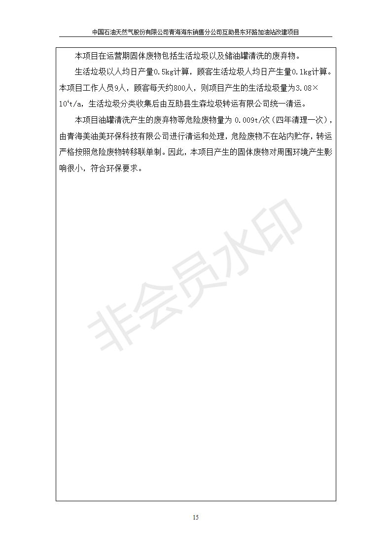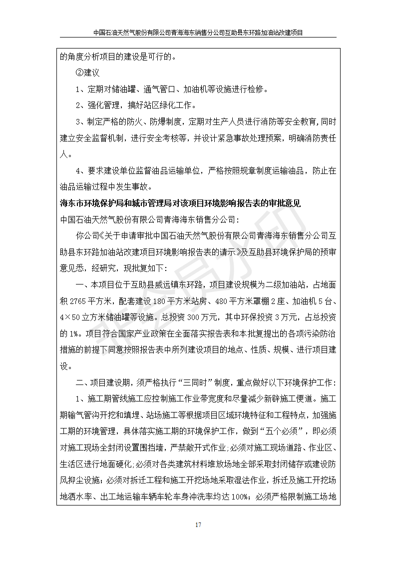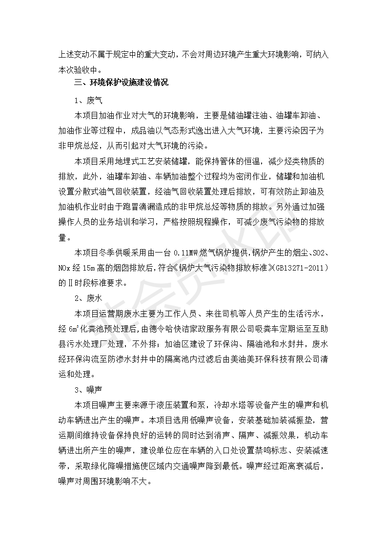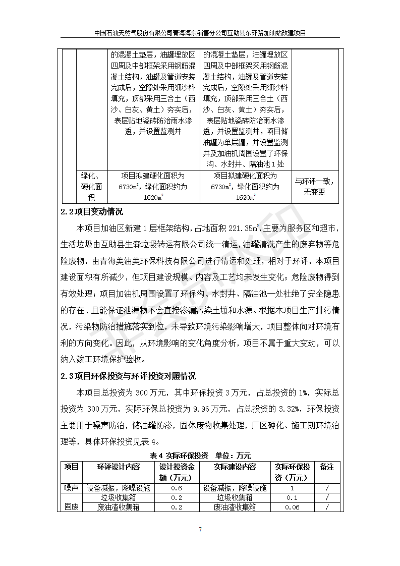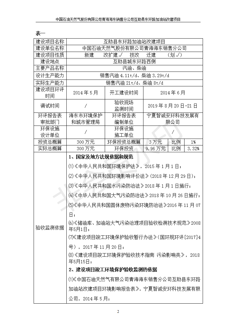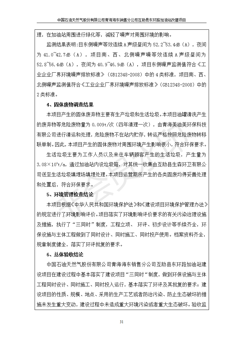 根據(jù)中華人民共和國(guó)國(guó)務(wù)院令第682號(hào)《國(guó)務(wù)院關(guān)于修改〈建設(shè)項(xiàng)目環(huán)境保護(hù)管理?xiàng)l例〉的決定》和《建設(shè)項(xiàng)目竣工環(huán)境保護(hù)驗(yàn)收暫行辦法》(國(guó)務(wù)院令682號(hào)),互助縣東環(huán)路加油站改建項(xiàng)目(包括竣工環(huán)境保護(hù)驗(yàn)收監(jiān)測(cè)報(bào)告表和驗(yàn)收意見)公示如下。 一、項(xiàng)目名稱:互助縣東環(huán)路加油站改建項(xiàng)目 二、地點(diǎn):青海省海東市互助縣東環(huán)路 六、聯(lián)系電話:0971-6515411 七、公示時(shí)間:二〇一九年九月二十七日至二〇一九年十月二十九日 公示期間,對(duì)上述公示內(nèi)容如有異議,請(qǐng)以書面形式反饋,個(gè)人須署真實(shí)姓名,單位須加蓋公章。