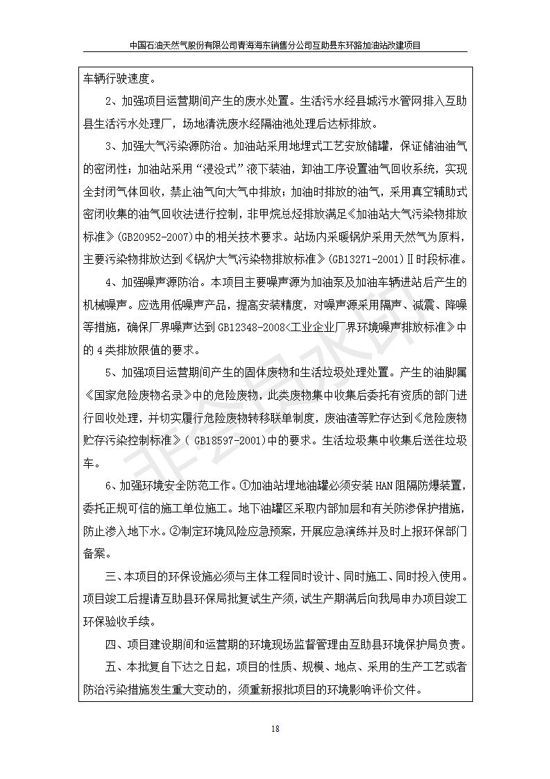 上一篇:互助縣東和加油站原址擴(kuò)建項(xiàng)目 竣工環(huán)境保護(hù)驗(yàn)收監(jiān)測(cè)報(bào)告表公示 | 下一篇:互助縣沙塘川加油站建設(shè)項(xiàng)目竣工環(huán)境保護(hù)驗(yàn)收監(jiān)測(cè)報(bào)告表 |