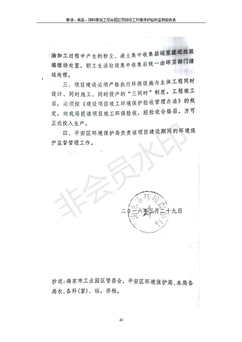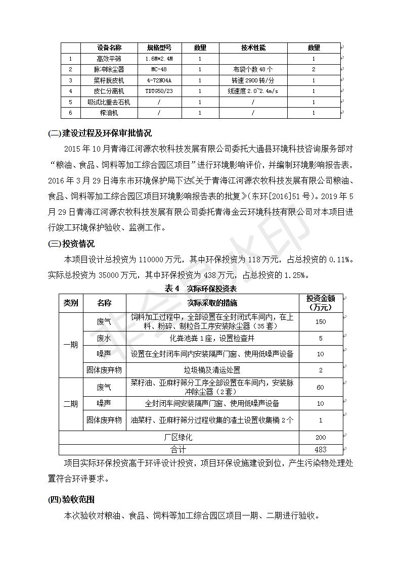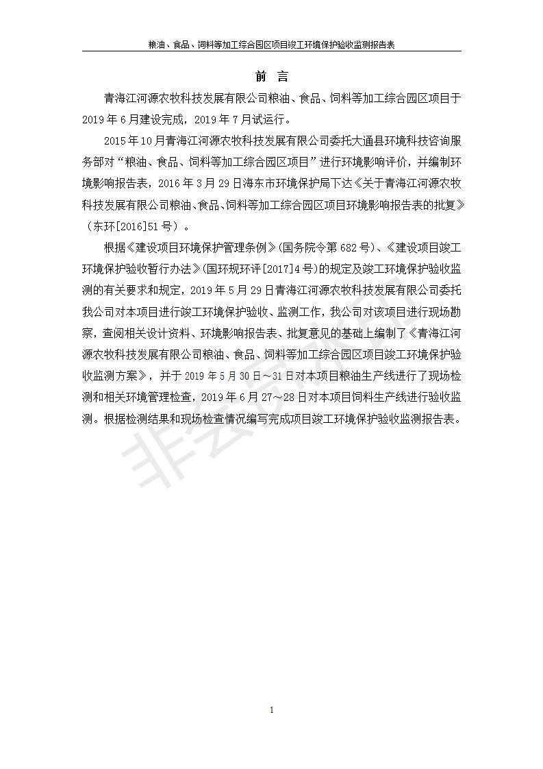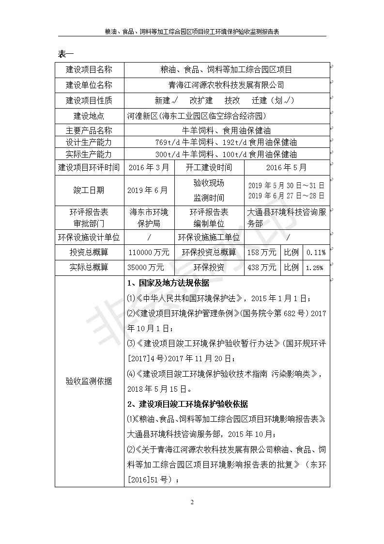 根據(jù)中華人民共和國國務(wù)院令第682號《國務(wù)院關(guān)于修改〈建設(shè)項(xiàng)目環(huán)境保護(hù)管理?xiàng)l例〉的決定》和《建設(shè)項(xiàng)目竣工環(huán)境保護(hù)驗(yàn)收暫行辦法》(國務(wù)院令682號),糧油、食品、飼料等加工綜合園區(qū)項(xiàng)目竣工環(huán)境保護(hù)驗(yàn)收監(jiān)測報告表(包括竣工環(huán)境保護(hù)驗(yàn)收監(jiān)測報告表和驗(yàn)收意見)公示如下。 一、項(xiàng)目名稱:糧油、食品、飼料等加工綜合園區(qū)項(xiàng)目 二、地點(diǎn):河湟新區(qū)(海東工業(yè)園區(qū)臨空綜合經(jīng)濟(jì)園) 六、聯(lián)系電話:0971-6515411 七、公示時間:二〇一九年十月九日至二〇一九年十一月五日 公示期間,對上述公示內(nèi)容如有異議,請以書面形式反饋,個人須署真實(shí)姓名,單位須加蓋公章。