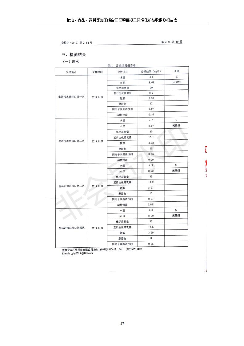糧油、食品、飼料等加工綜合園區(qū)項(xiàng)目竣工環(huán)境保護(hù)驗(yàn)收監(jiān)測報告表公示發(fā)布日期:(2019-10-9) 點(diǎn)擊次數(shù):2461 |