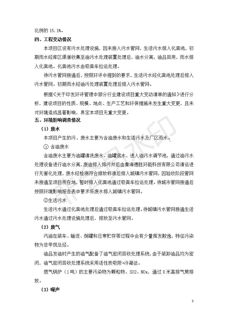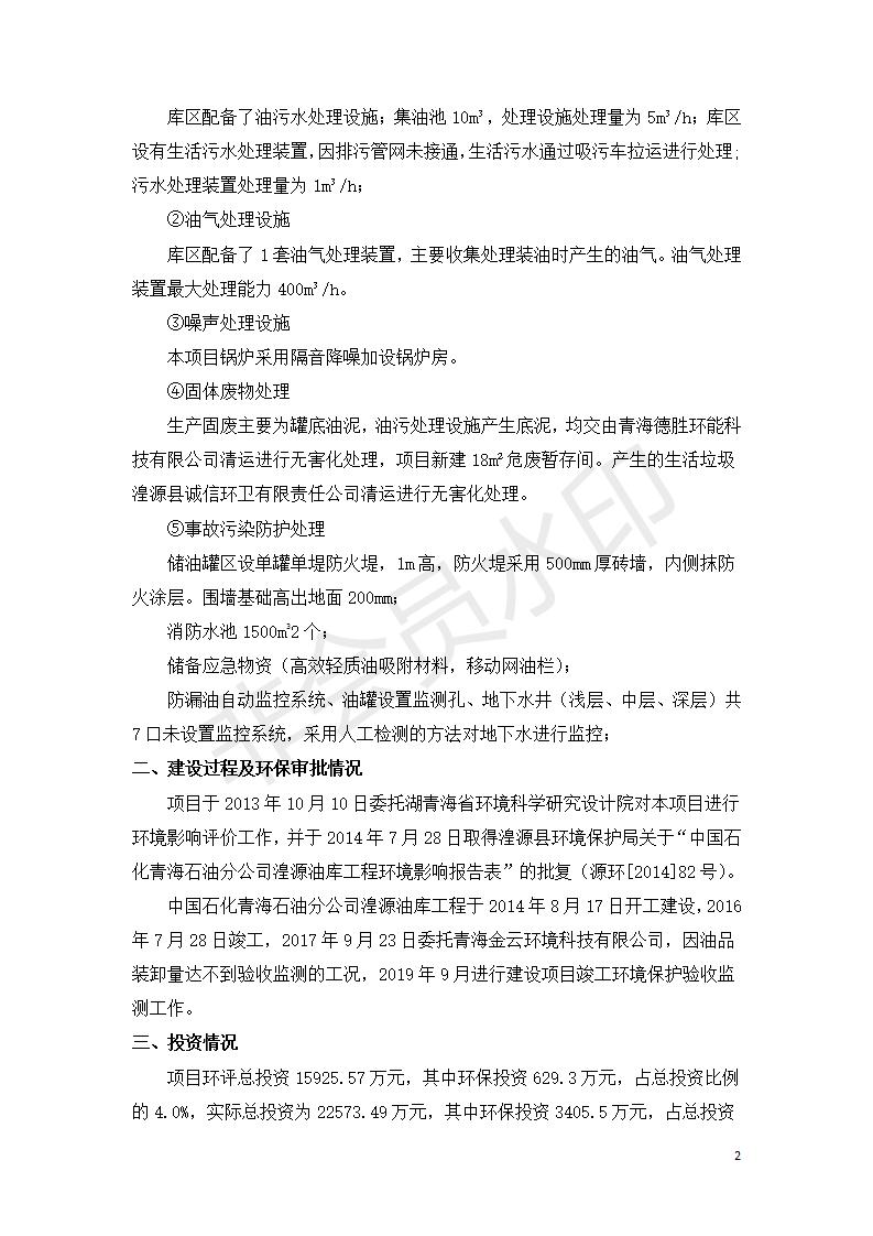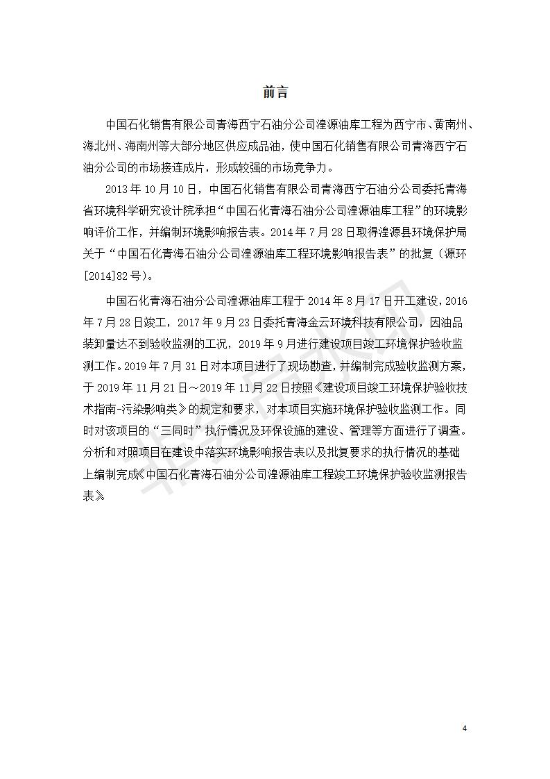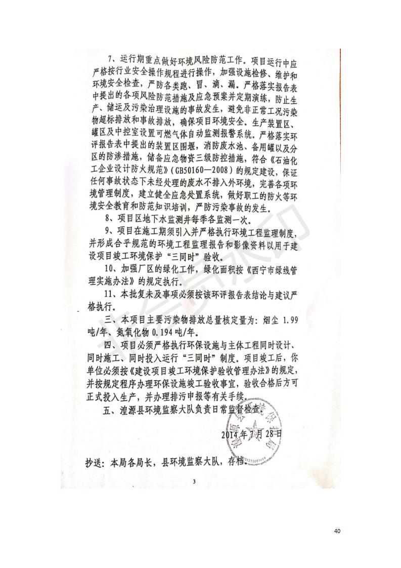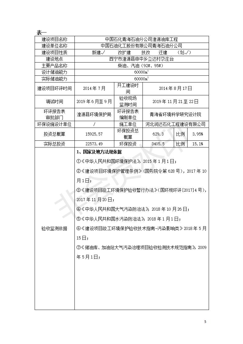 據(jù)中華人民共和國(guó)國(guó)務(wù)院令第682號(hào)《國(guó)務(wù)院關(guān)于修改〈建設(shè)項(xiàng)目環(huán)境保護(hù)管理?xiàng)l例〉的決定》和《建設(shè)項(xiàng)目竣工環(huán)境保護(hù)驗(yàn)收暫行辦法》(國(guó)務(wù)院令682號(hào)),中國(guó)石化青海石油分公司湟源油庫工程建設(shè)項(xiàng)目(包括竣工環(huán)境保護(hù)驗(yàn)收監(jiān)測(cè)報(bào)告表和驗(yàn)收意見)公示如下。 一、項(xiàng)目名稱:中國(guó)石化青海石油分公司湟源油庫工程建設(shè)項(xiàng)目 二、地點(diǎn):西寧市湟源縣申中鄉(xiāng)立達(dá)村尕莊臺(tái) 三、建設(shè)單位:中國(guó)石化銷售股份有限公司青海石油分公司 四、建設(shè)內(nèi)容:油品儲(chǔ)量6萬m3、其他配套設(shè)施。五、聯(lián)系人:董恒棟 六、聯(lián)系電話:18697130811 七、公示時(shí)間:二〇二〇年三月十三日至二〇二〇年四月十日 公示期間,對(duì)上述公示內(nèi)容如有異議,請(qǐng)以書面形式反饋,個(gè)人須署真實(shí)姓名,單位須加蓋公章。