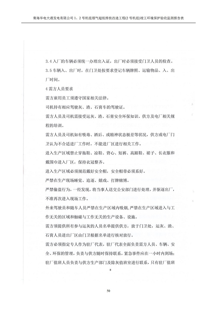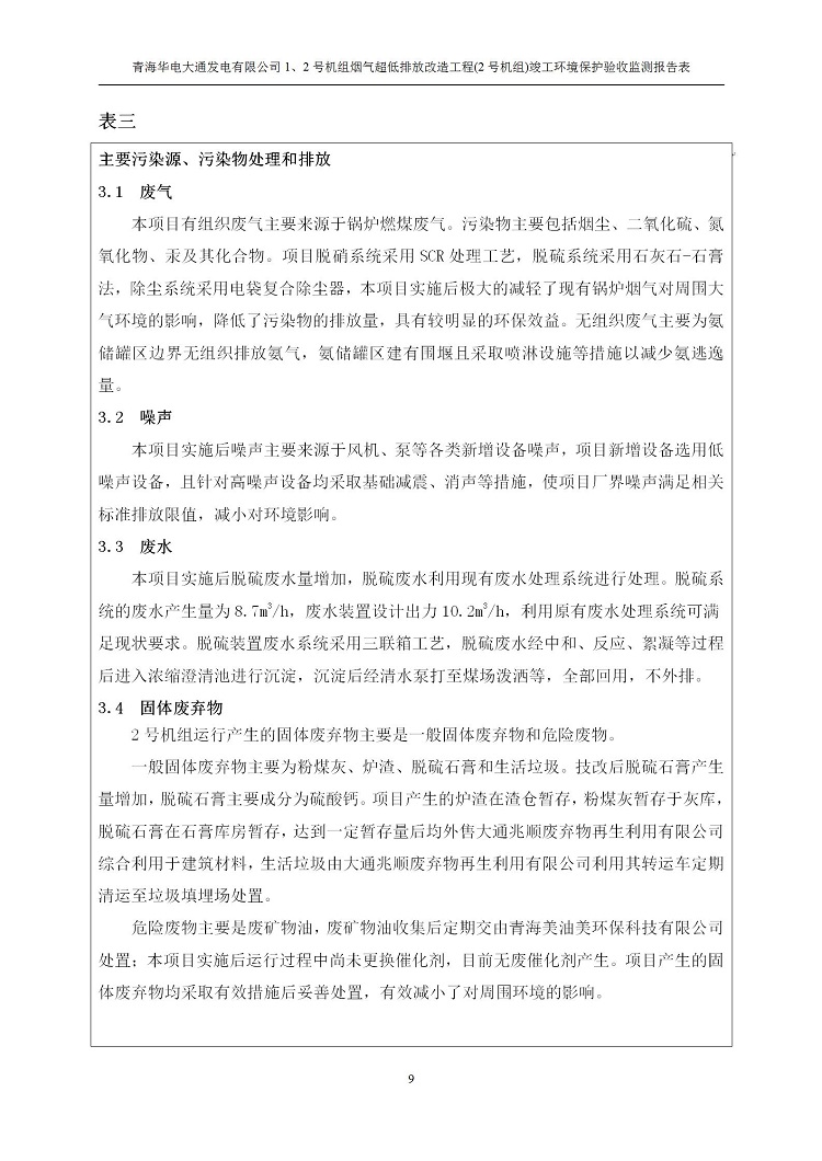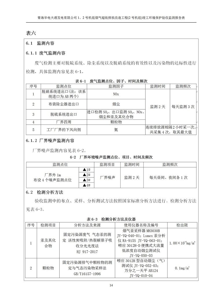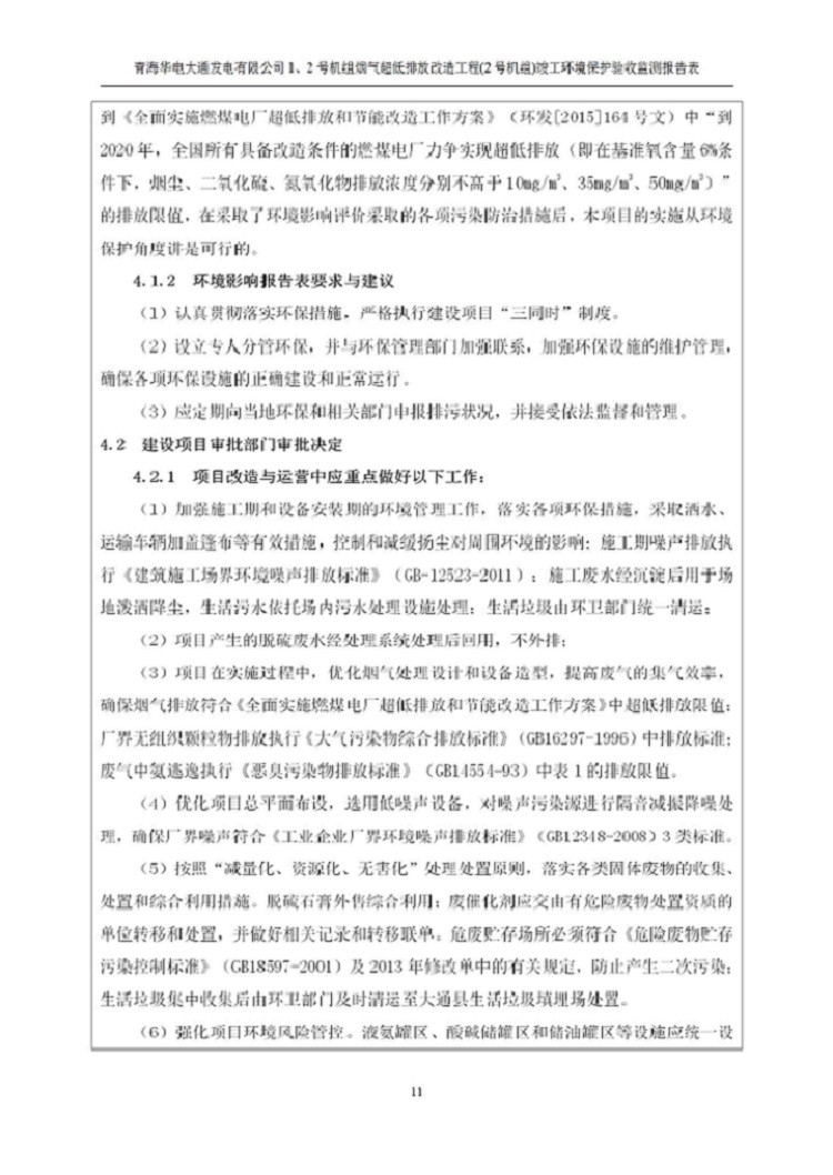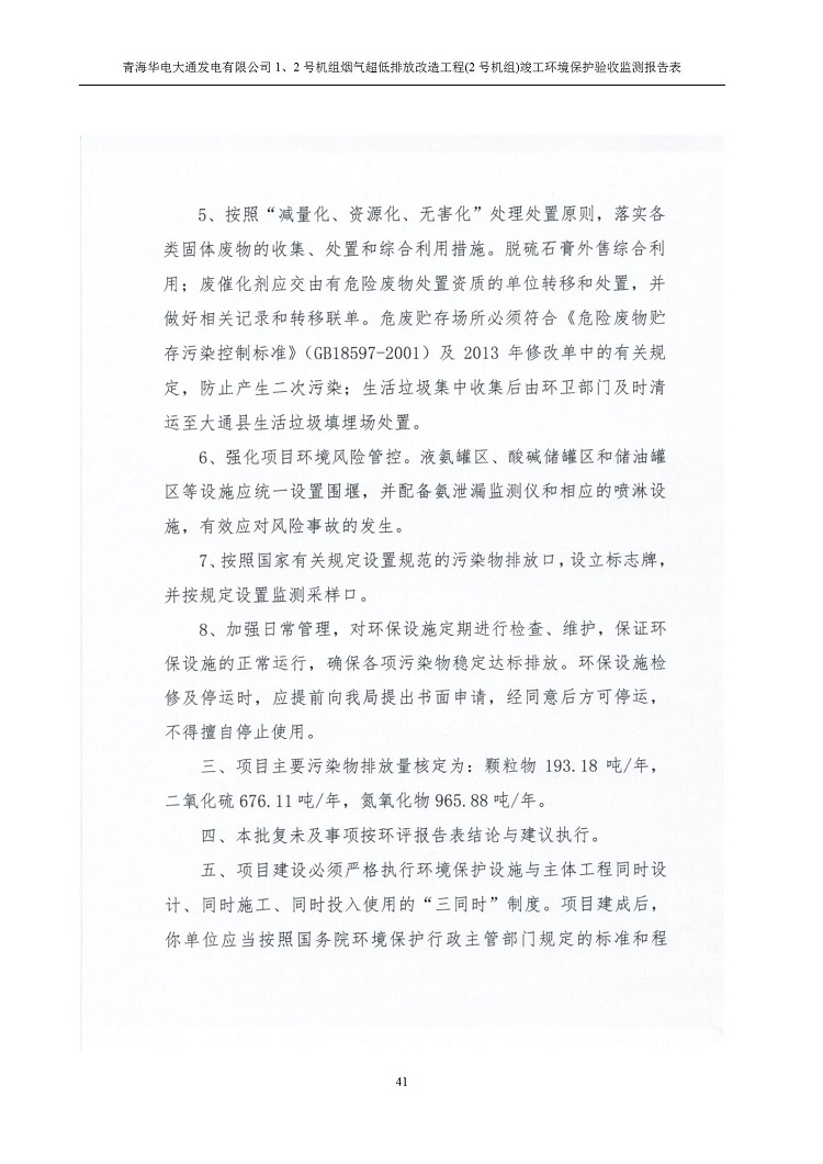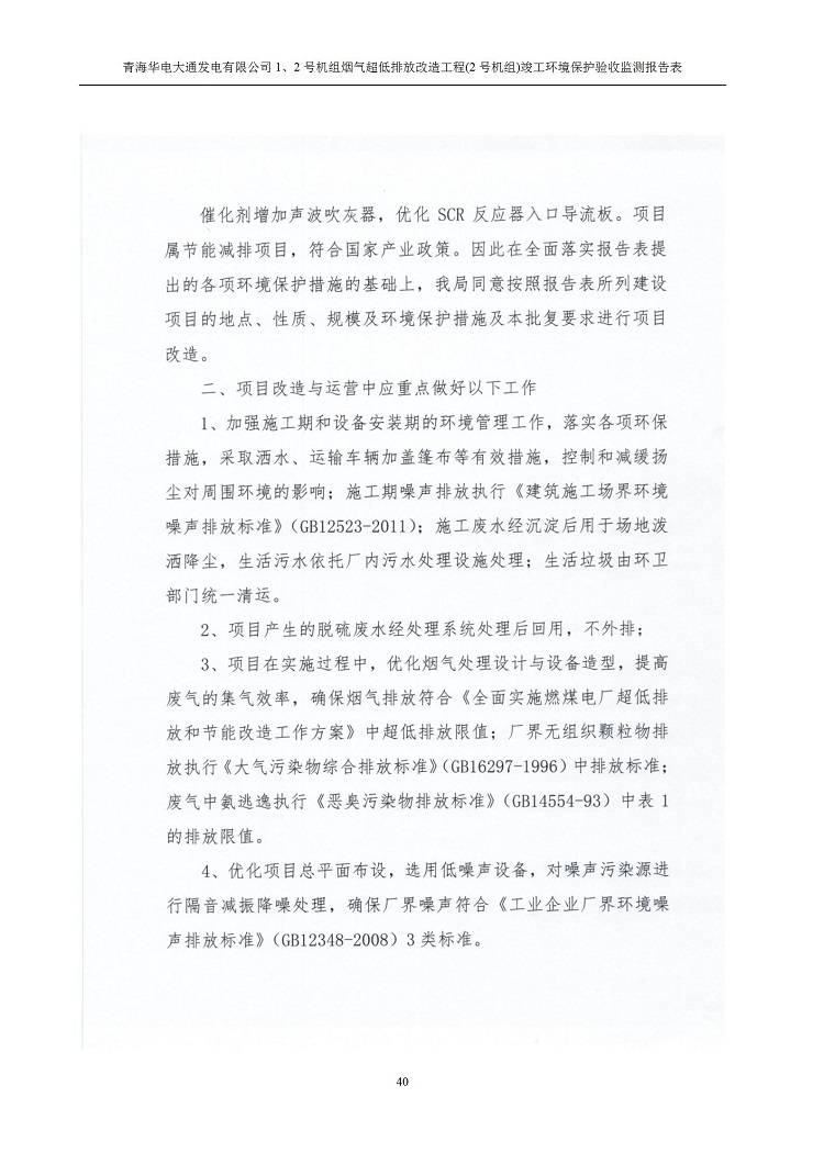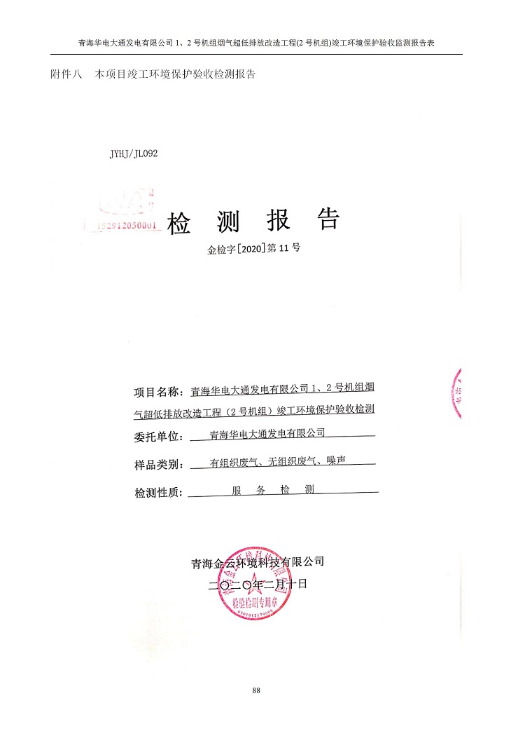 根據(jù)中華人民共和國國務(wù)院令第682號(hào)《國務(wù)院關(guān)于修改〈建設(shè)項(xiàng)目環(huán)境保護(hù)管理?xiàng)l例〉的決定》和《建設(shè)項(xiàng)目竣工環(huán)境保護(hù)驗(yàn)收暫行辦法》(國務(wù)院令682號(hào)),青海華電大通發(fā)電有限公司1、2號(hào)機(jī)組煙氣超低排放改造工程(2號(hào)機(jī)組) (包括竣工環(huán)境保護(hù)驗(yàn)收監(jiān)測報(bào)告表和驗(yàn)收意見)公示如下。 一、項(xiàng)目名稱:青海華電大通發(fā)電有限公司1、2號(hào)機(jī)組煙氣超低排放改造工程(2號(hào)機(jī)組) 竣工環(huán)境保護(hù)驗(yàn)收監(jiān)測報(bào)告表 二、地點(diǎn):青海省西寧市大通縣寧張公路31公里處 三、建設(shè)單位:青海華電大通發(fā)電有限公司 四、建設(shè)內(nèi)容:2號(hào)機(jī)組煙氣超低排放改造,2號(hào)機(jī)組改造內(nèi)容為脫硫系統(tǒng)保留原脫硫裝置作為一級(jí)塔,新建二級(jí)合金托盤塔串聯(lián)吸收塔;對(duì)原“1+2”電袋復(fù)合除塵器的一電場電源進(jìn)行改造,對(duì)布袋除塵器濾袋進(jìn)行更換;對(duì)原脫硝系統(tǒng)選擇性催化還原法(SCR)脫硝工藝加裝備用催化劑,每層催化劑增加聲波吹灰器,優(yōu)化SCR反應(yīng)器入口導(dǎo)流板。 五、聯(lián)系人:馬世敏 六、聯(lián)系電 話:0971-6515411 七、公示時(shí)間:二〇二〇年四月二十九日至二〇二〇年五月二十八日 公示期間,對(duì)上述公示內(nèi)容如有異議,請(qǐng)以書面形式反饋,個(gè)人須署真實(shí)姓名,單位須加蓋公章。