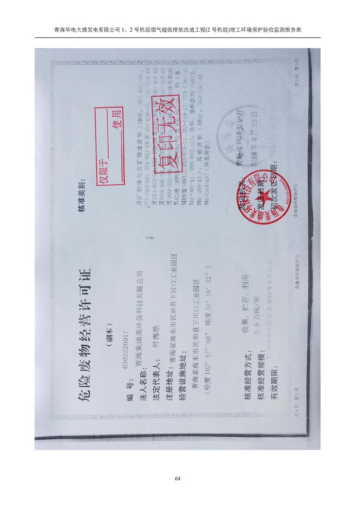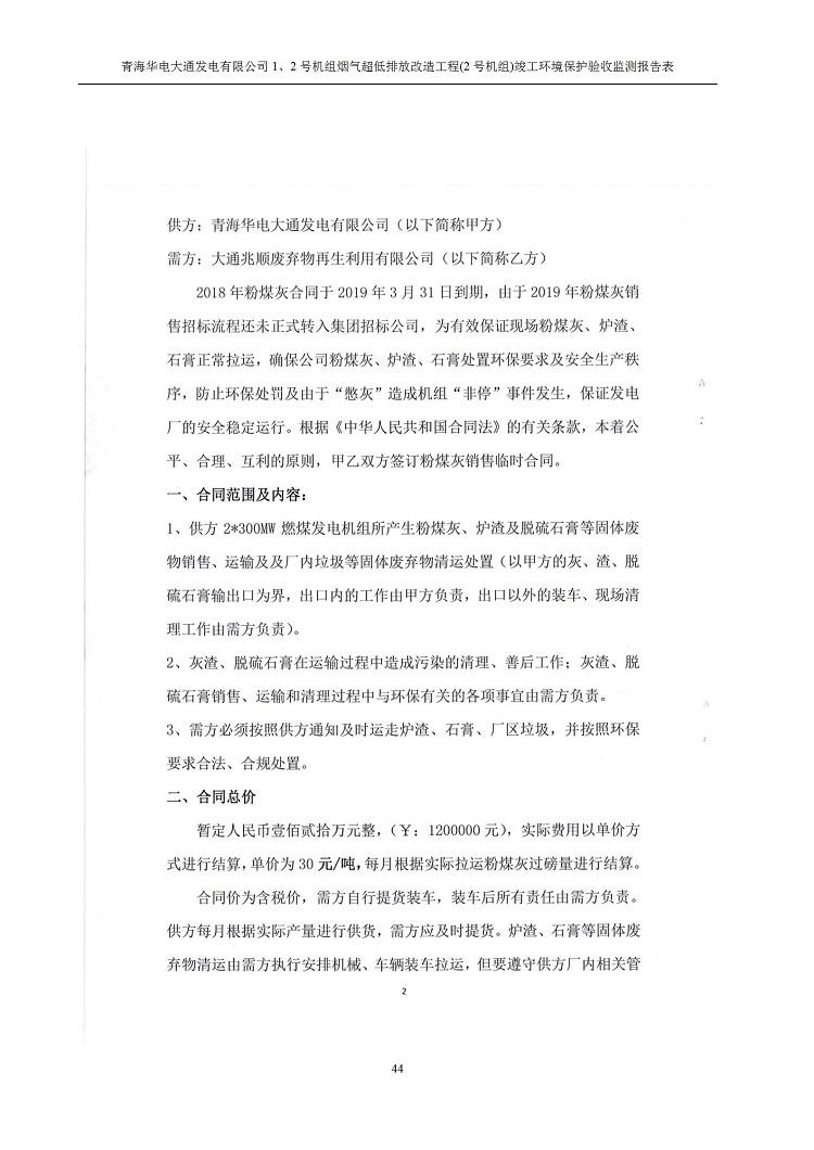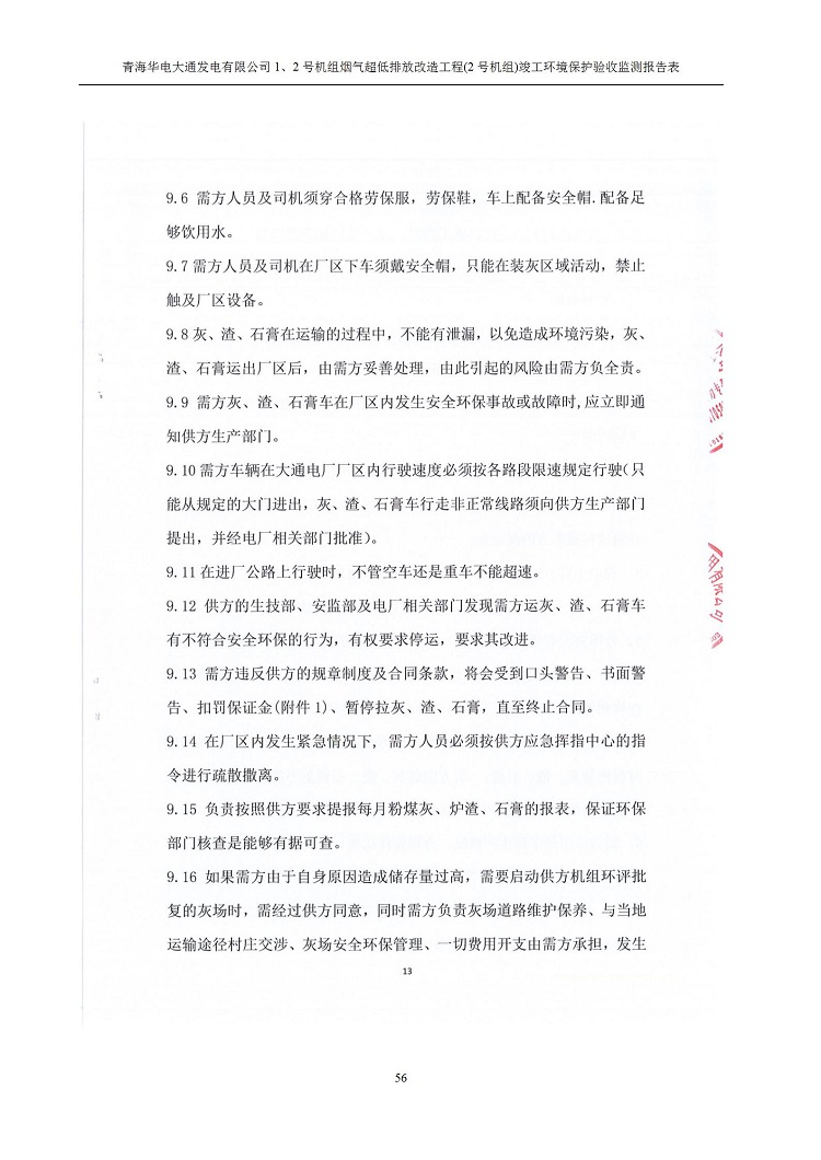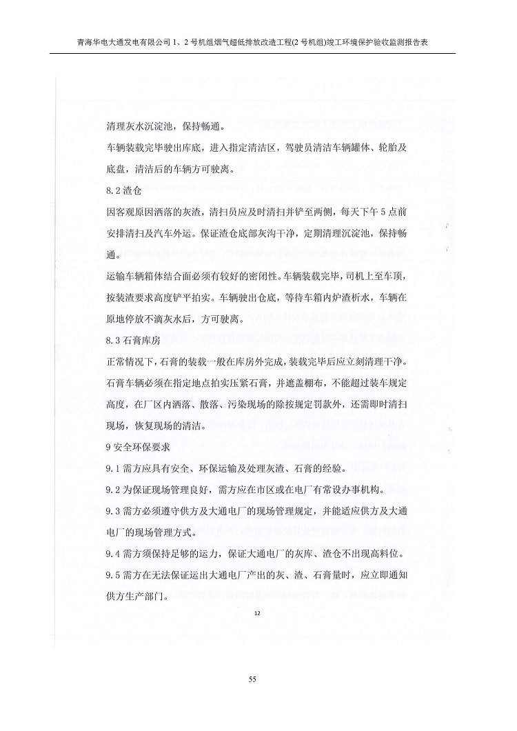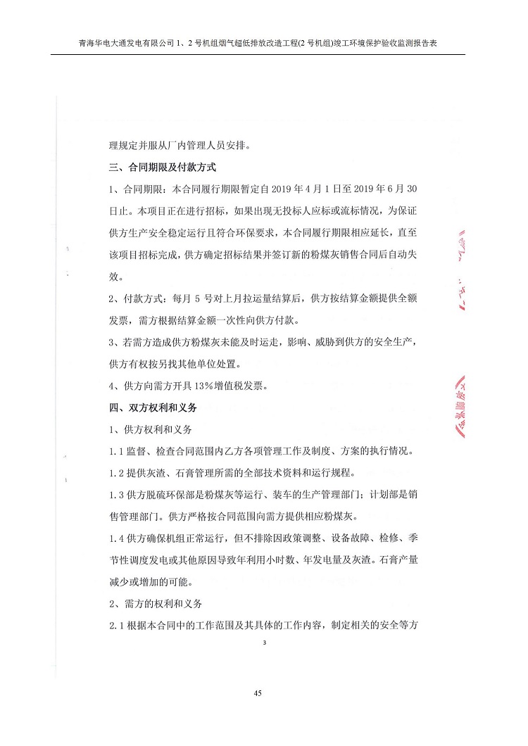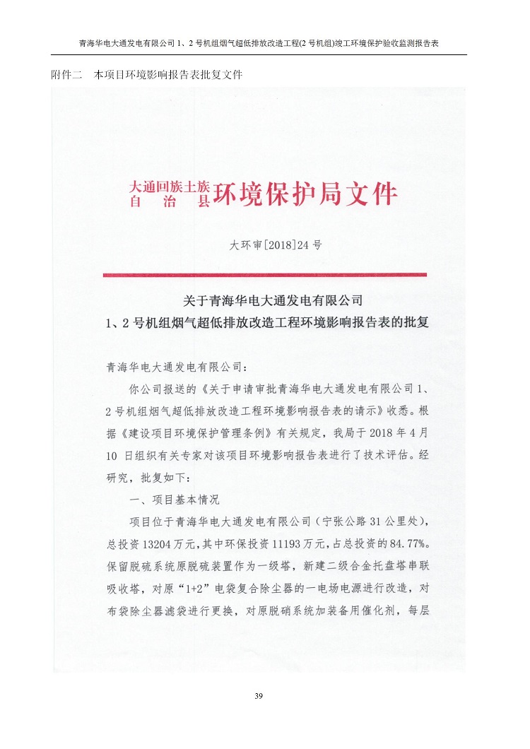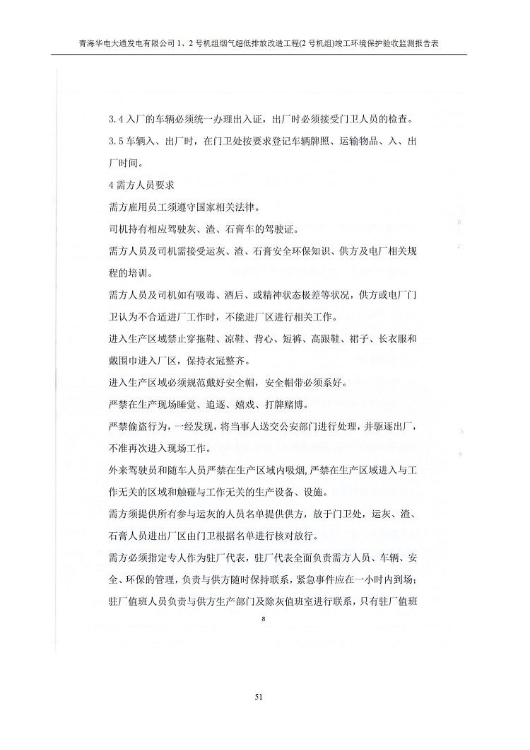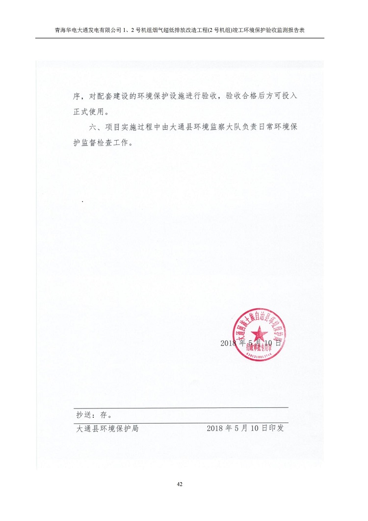 根據(jù)中華人民共和國國務(wù)院令第682號(hào)《國務(wù)院關(guān)于修改〈建設(shè)項(xiàng)目環(huán)境保護(hù)管理?xiàng)l例〉的決定》和《建設(shè)項(xiàng)目竣工環(huán)境保護(hù)驗(yàn)收暫行辦法》(國務(wù)院令682號(hào)),青海華電大通發(fā)電有限公司1、2號(hào)機(jī)組煙氣超低排放改造工程(2號(hào)機(jī)組) (包括竣工環(huán)境保護(hù)驗(yàn)收監(jiān)測報(bào)告表和驗(yàn)收意見)公示如下。 一、項(xiàng)目名稱:青海華電大通發(fā)電有限公司1、2號(hào)機(jī)組煙氣超低排放改造工程(2號(hào)機(jī)組) 竣工環(huán)境保護(hù)驗(yàn)收監(jiān)測報(bào)告表 二、地點(diǎn):青海省西寧市大通縣寧張公路31公里處 三、建設(shè)單位:青海華電大通發(fā)電有限公司 四、建設(shè)內(nèi)容:2號(hào)機(jī)組煙氣超低排放改造,2號(hào)機(jī)組改造內(nèi)容為脫硫系統(tǒng)保留原脫硫裝置作為一級(jí)塔,新建二級(jí)合金托盤塔串聯(lián)吸收塔;對(duì)原“1+2”電袋復(fù)合除塵器的一電場電源進(jìn)行改造,對(duì)布袋除塵器濾袋進(jìn)行更換;對(duì)原脫硝系統(tǒng)選擇性催化還原法(SCR)脫硝工藝加裝備用催化劑,每層催化劑增加聲波吹灰器,優(yōu)化SCR反應(yīng)器入口導(dǎo)流板。 五、聯(lián)系人:馬世敏 六、聯(lián)系電 話:0971-6515411 七、公示時(shí)間:二〇二〇年四月二十九日至二〇二〇年五月二十八日 公示期間,對(duì)上述公示內(nèi)容如有異議,請(qǐng)以書面形式反饋,個(gè)人須署真實(shí)姓名,單位須加蓋公章。