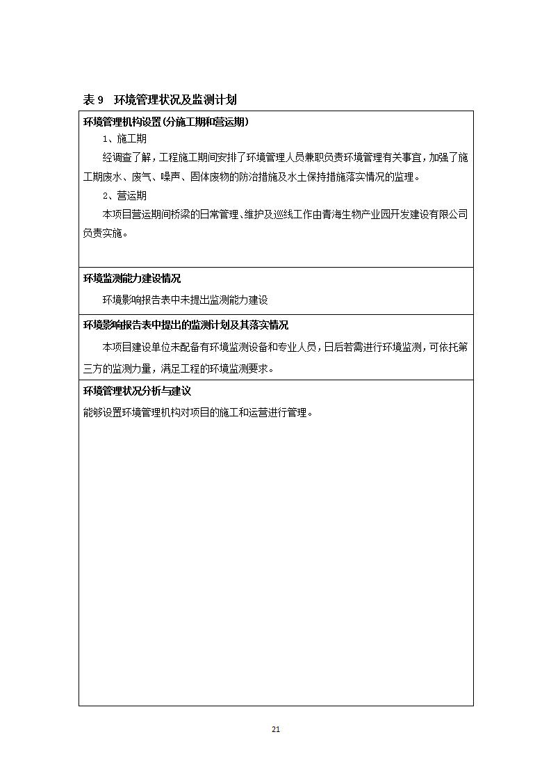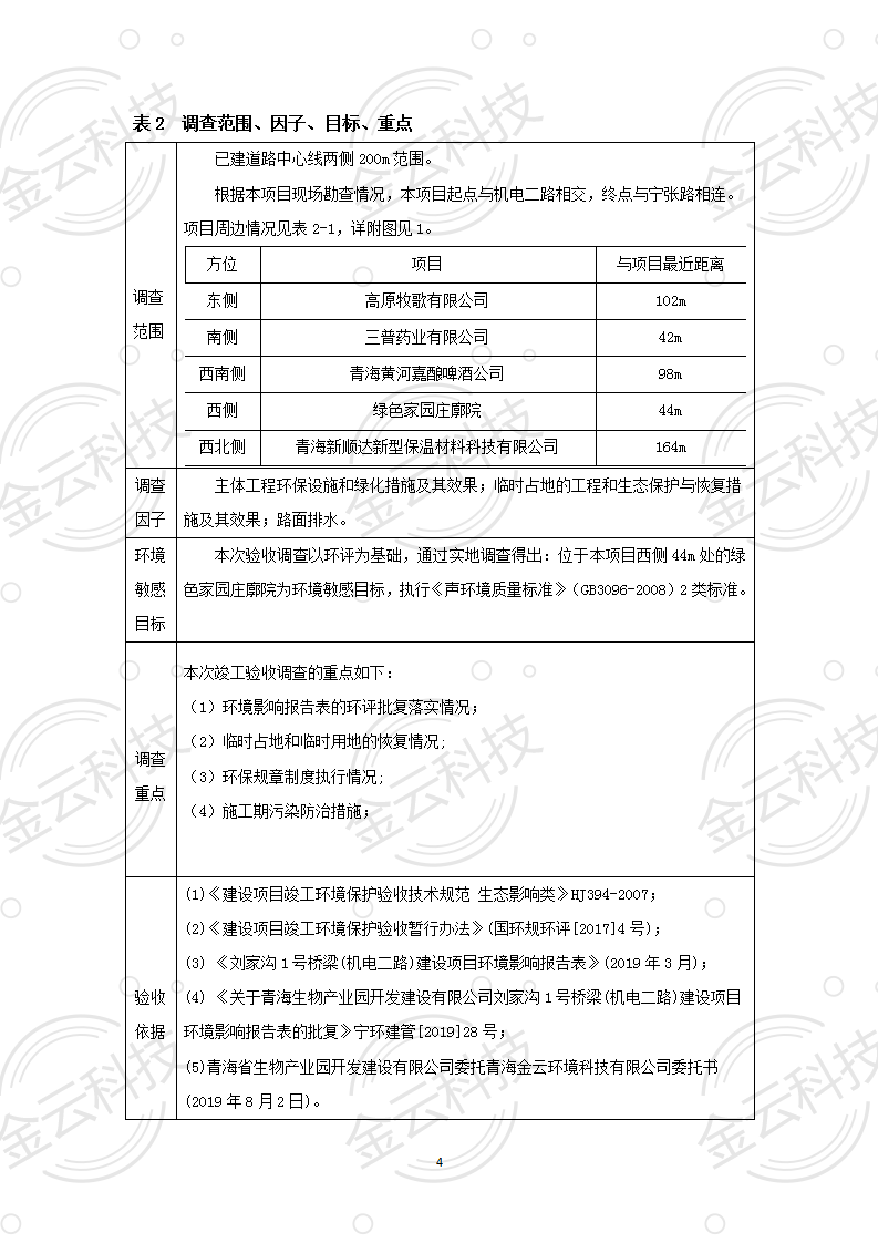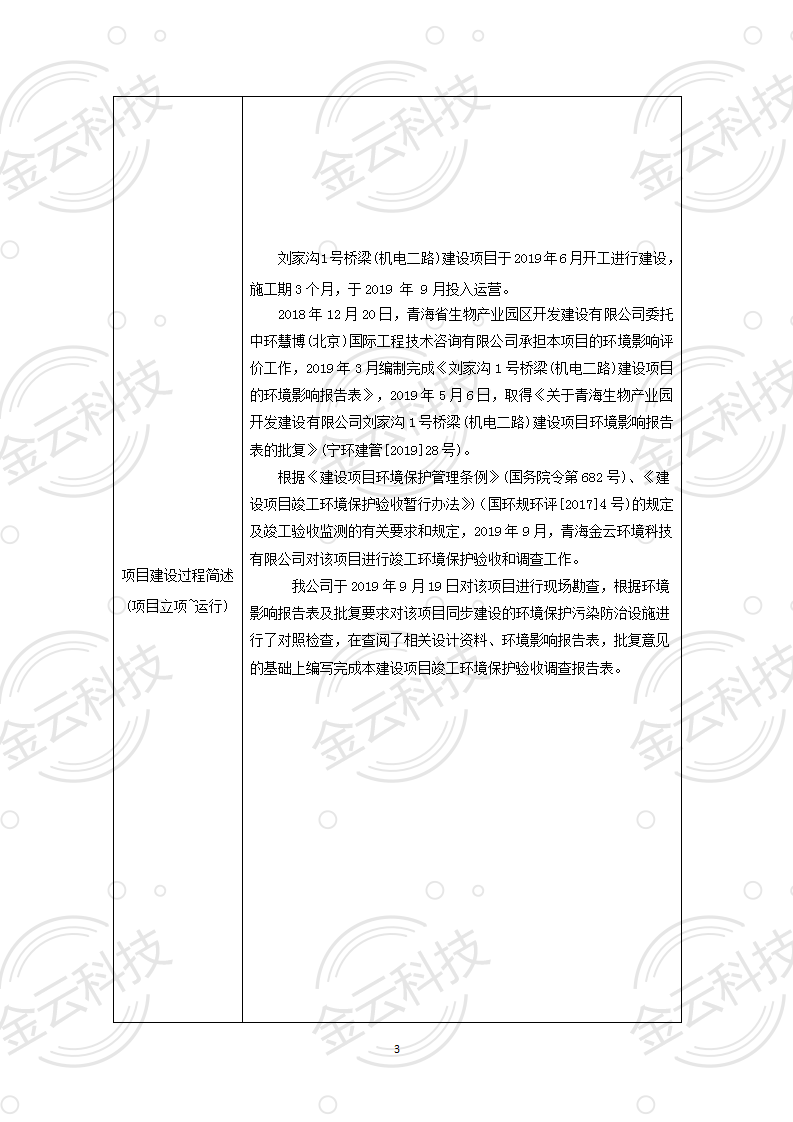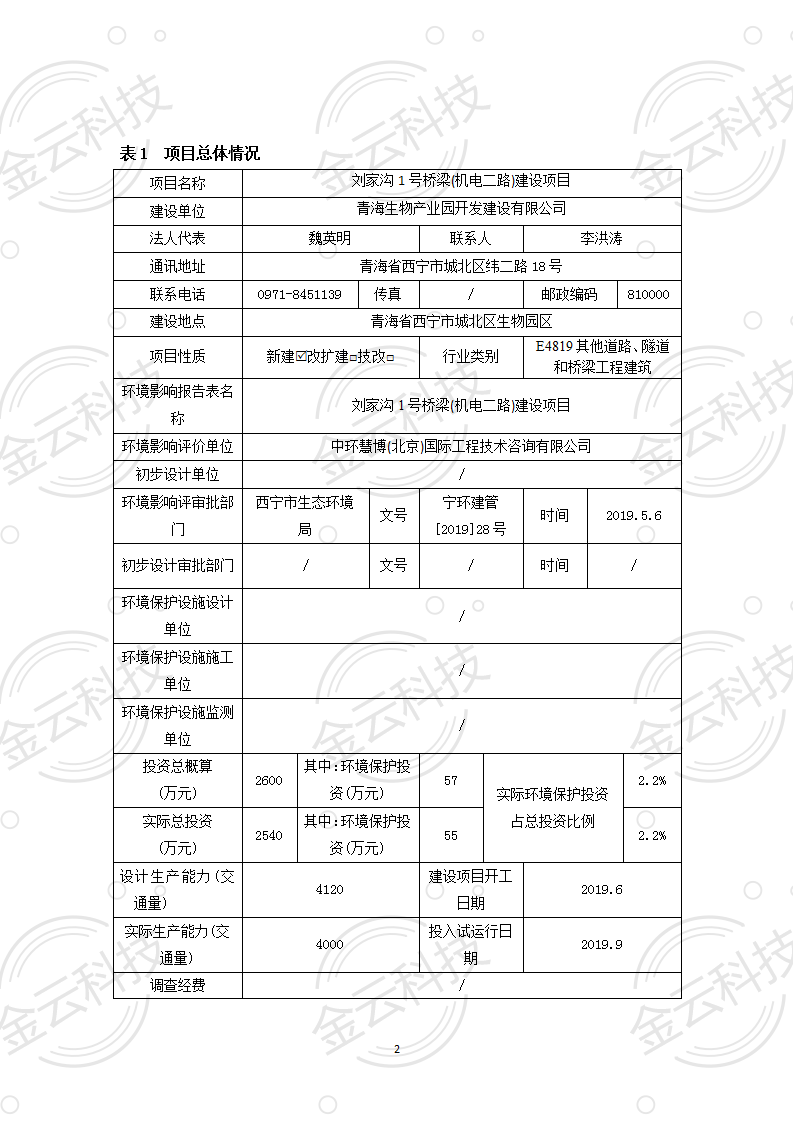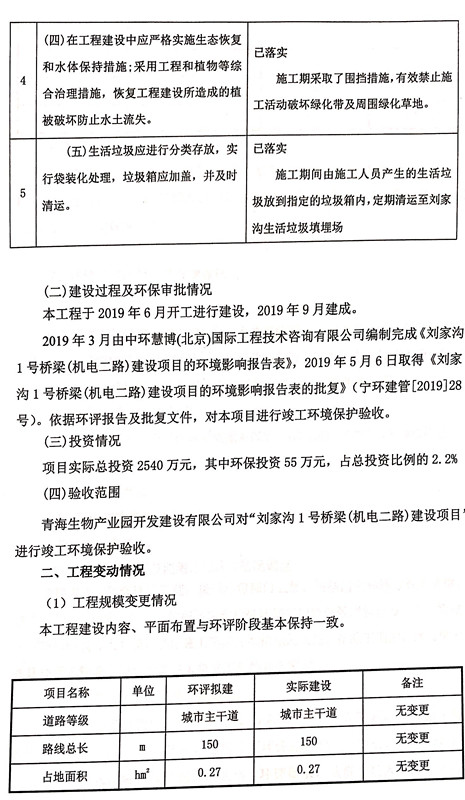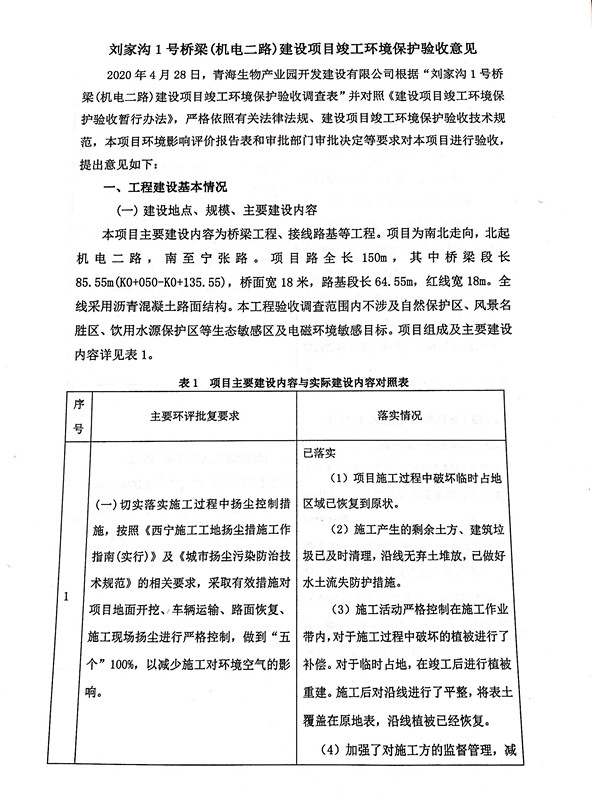根據(jù)中華人民共和國國務(wù)院令第682號《國務(wù)院關(guān)于修改〈建設(shè)項目環(huán)境保護管理條例〉的決定》和《建設(shè)項目竣工環(huán)境保護驗收暫行辦法》(國務(wù)院令682號),劉家溝1號橋梁(機電二路)建設(shè)項目竣工環(huán)境保護驗收調(diào)查表,(包括竣工環(huán)境保護驗收調(diào)查表和驗收意見)公示如下。 一、項目名稱:劉家溝1號橋梁(機電二路)建設(shè)項目竣工環(huán)境保護驗收調(diào)查表 二、地點:青海省西寧市城北區(qū)生物園區(qū) 三、建設(shè)單位:青海生物產(chǎn)業(yè)園開發(fā)建設(shè)有限公司 四、建設(shè)內(nèi)容:本項目主要建設(shè)內(nèi)容為橋梁工程、接線路基等工程。項目南北走向,北起機電二路,南至寧張路,項目全長150m. 五、聯(lián)系人:張工 六、聯(lián)系電 話:0971-6515411 七、公示時間:二〇二〇年六月二日至二〇二〇年六月三十日 公示期間,對上述公示內(nèi)容如有異議,請以書面形式反饋,個人須署真實姓名,單位須加蓋公章。 |
