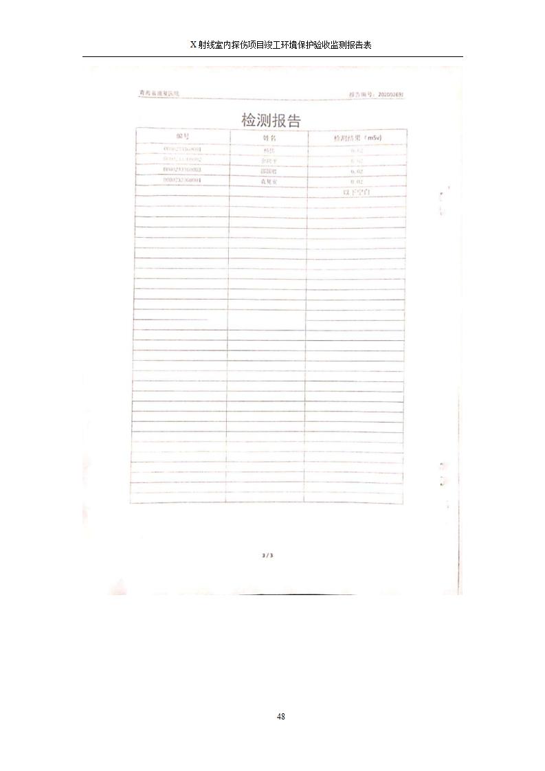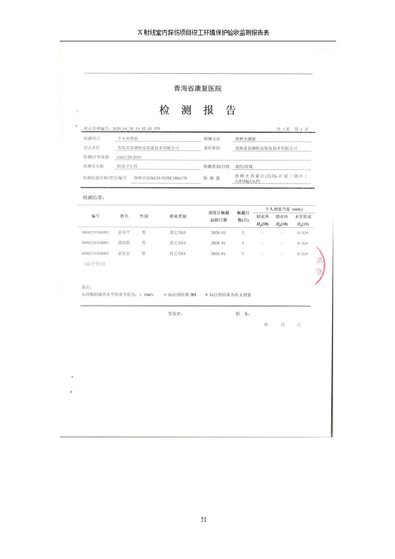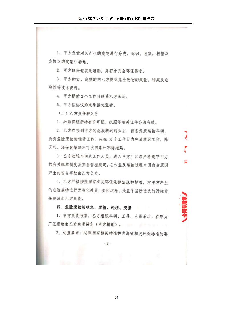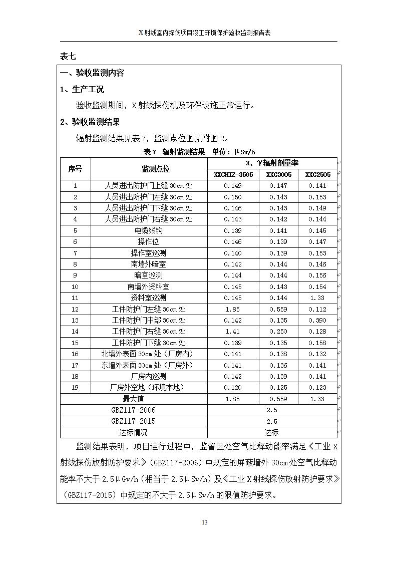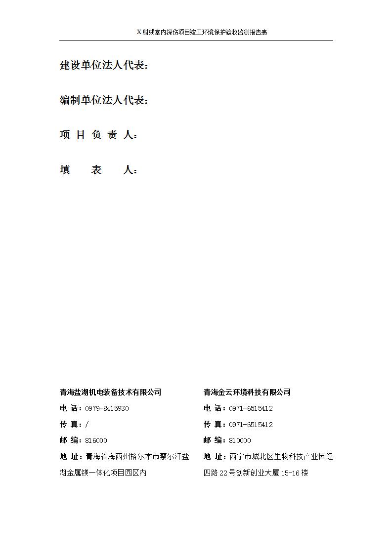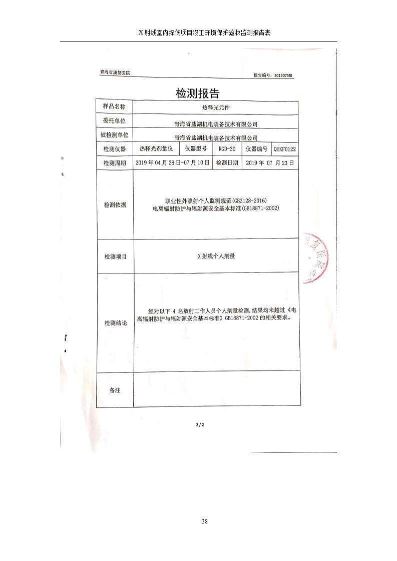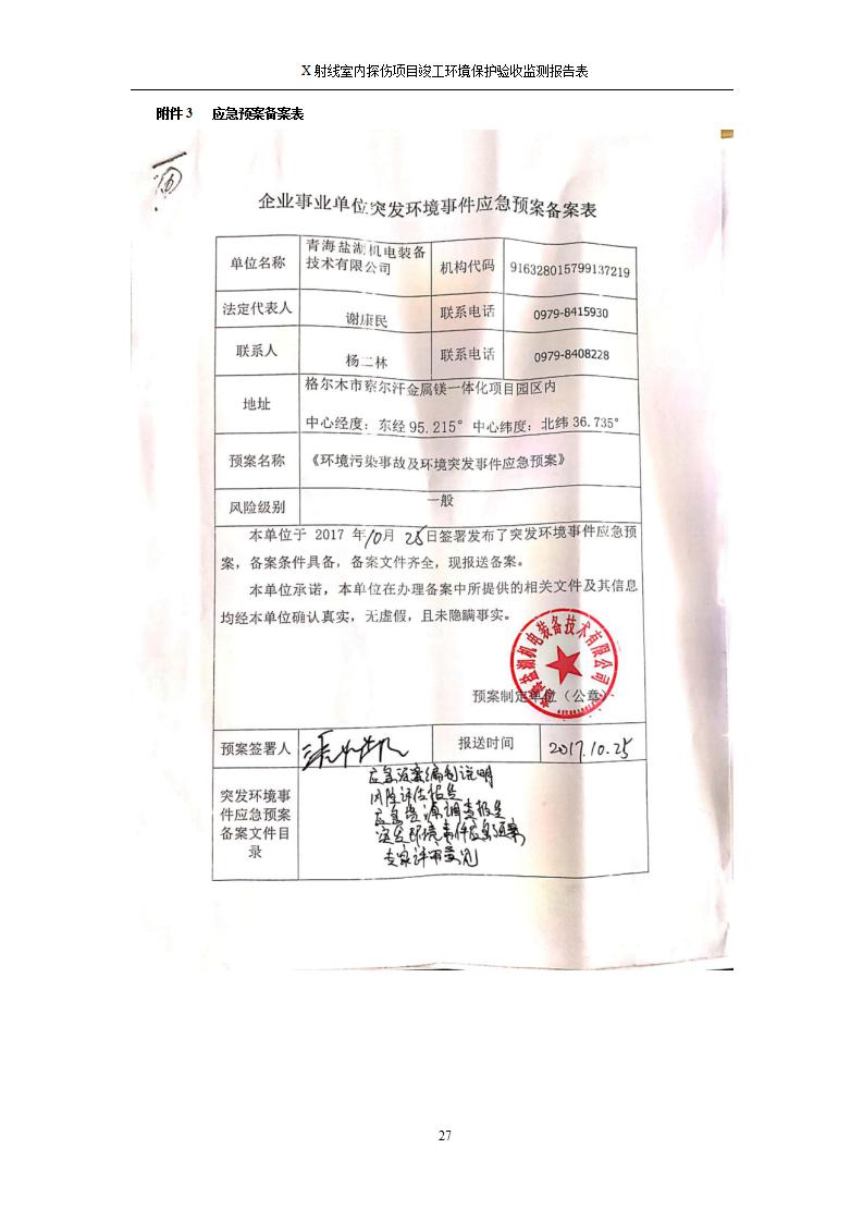 根據中華人民共和國國務院令第682號《國務院關于修改〈建設項目環(huán)境保護管理條例〉的決定》和《建設項目竣工環(huán)境保護驗收暫行辦法》(國務院令682號),青海鹽湖機電裝備技術有限公司X射線室內探傷項目竣工環(huán)境保護驗收監(jiān)測報告表公示如下。 一、項目名稱:X射線室內探傷項目竣工環(huán)境保護驗收監(jiān)測報告表 二、地點:青海省海西州格爾木市察爾汗鹽湖金屬鎂一體化項目園區(qū)內 三、建設單位:青海鹽湖機電裝備技術有限公司 四、建設內容:本項目位于公司三號車間廠房內,探傷室長21m,寬9.3m,共有3臺X射線探傷機。 五、聯(lián)系人:楊工 六、聯(lián)系電 話:0971-6515411 七、公示時間:二〇二〇年七月十日至二〇二〇年八月六日 公示期間,對上述公示內容如有異議,請以書面形式反饋,個人須署真實姓名,單位須加蓋公章。